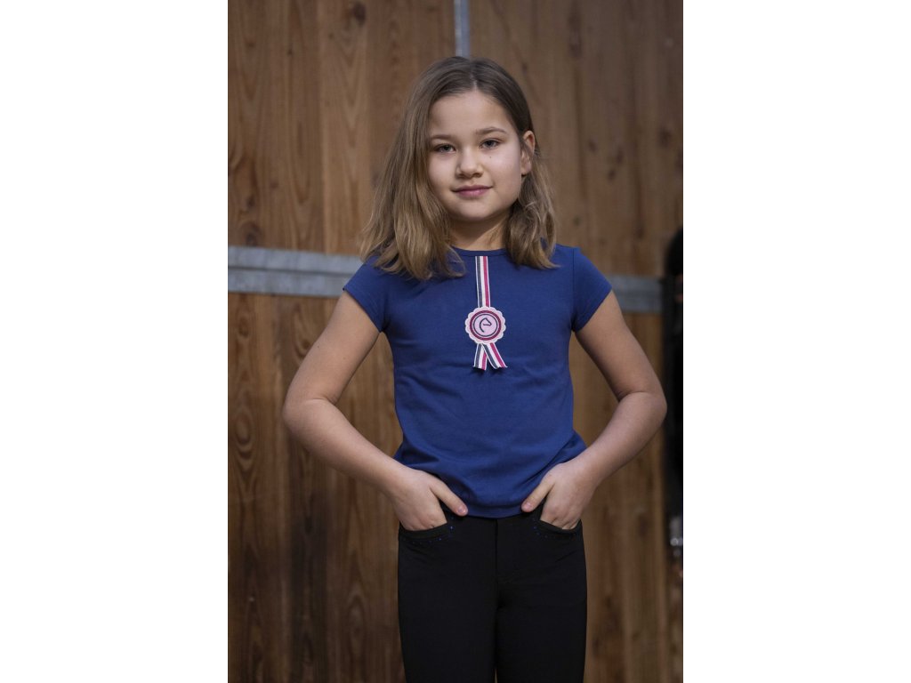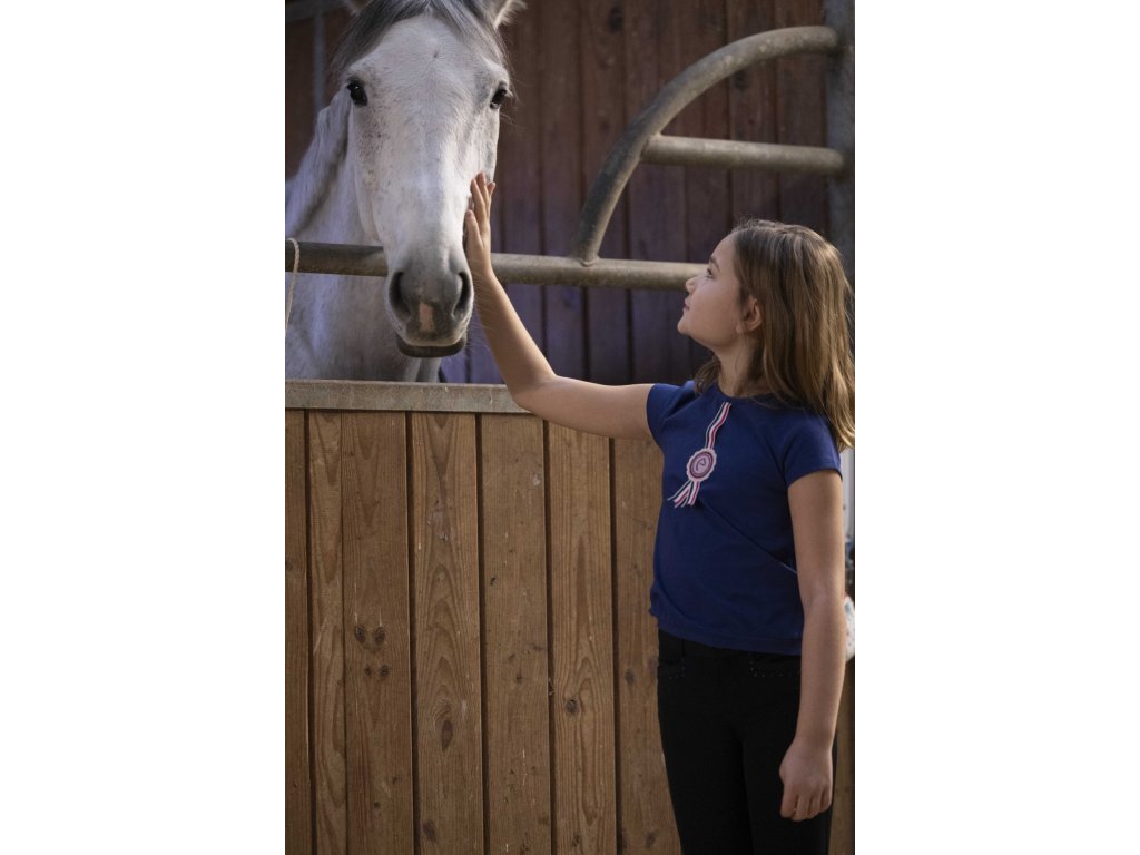Detské tričko s krátkym rukávom kombinuje pohodlie a hravý dizajn. Na prednej strane zdobí tričko rozeta, ktorá dodáva originálny a výrazný detail. Rovný strih a okrúhly výstrih zaisťujú pohodlné nosenie, zatiaľ čo spodná časť je zakončená gumou pre lepšie priľnutie a stabilitu. Možno prať v práčke pri 30 °C.