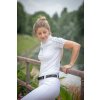 Súťažné tričko Anaïs s krátkym rukávom, ktoré je mimoriadne pohodlné a na prvý pohľad zaujme elegantnými bielymi a sivými vsadkami na ramenách. Má biely stojačik vhodný na preteky so zapínaním na gombíky. Vďaka pružnému materiálu poskytuje skvelý komfort a voľnosť pohybu.