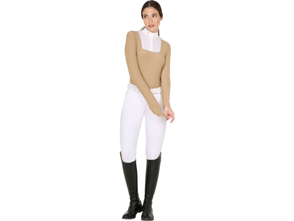 Tričko súťažné Jersey Rhinestone Equestro, dámske, beige