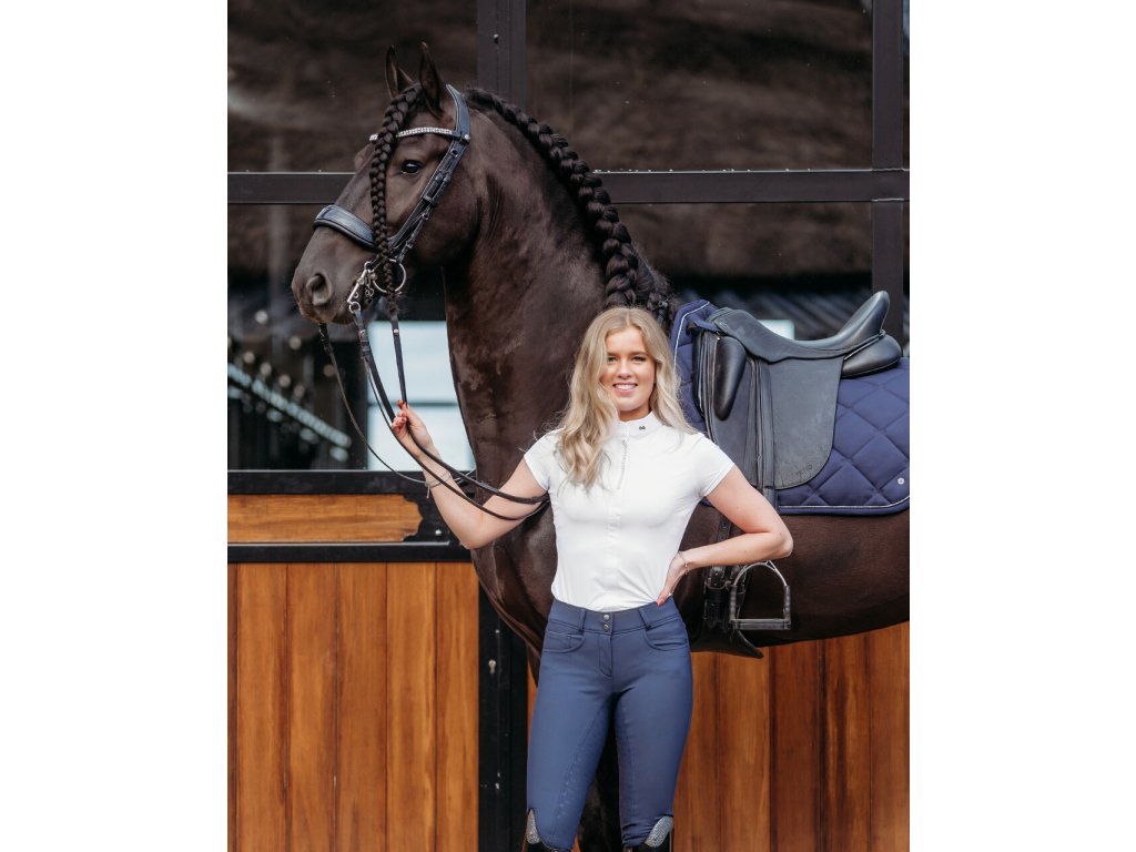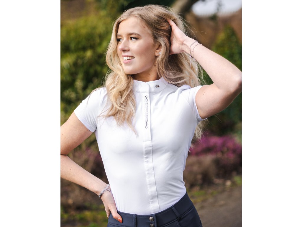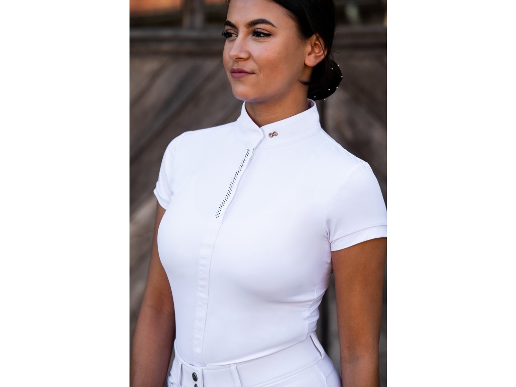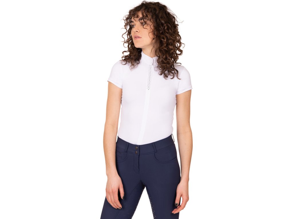 Veľmi kvalitné tričko PerformNow vhodné na preteky. Je vyrobené z veľmi pohodlného materiálu, ktorý skvele odvádza vlhkosť a poskytuje naviac aj ochranu pred UV žiarením. Golier sa dá rýchlo a jednoducho zapnúť pomocou magnetu (MagnetTEQ). Tričko je vybavené najnovšou technológiou Qi-tex®. Ide o odrážanie telesného tepla späť formou infračerveného žiarenia. Táto technológia podporuje zvýšenie krvného obehu a rýchlejšie zahrievanie svalov.Tričko je zdobené elegantnými trblietavými kamienkami a malým logom PresTeq na golieri.
