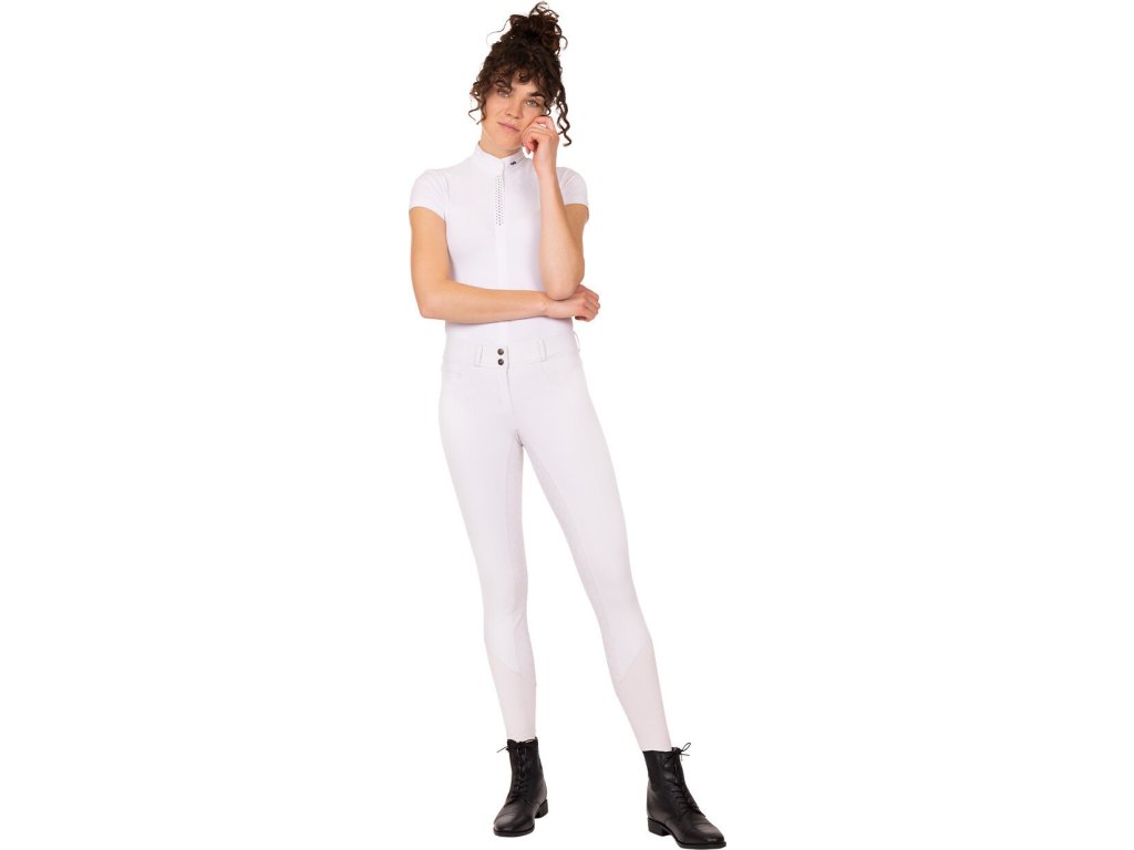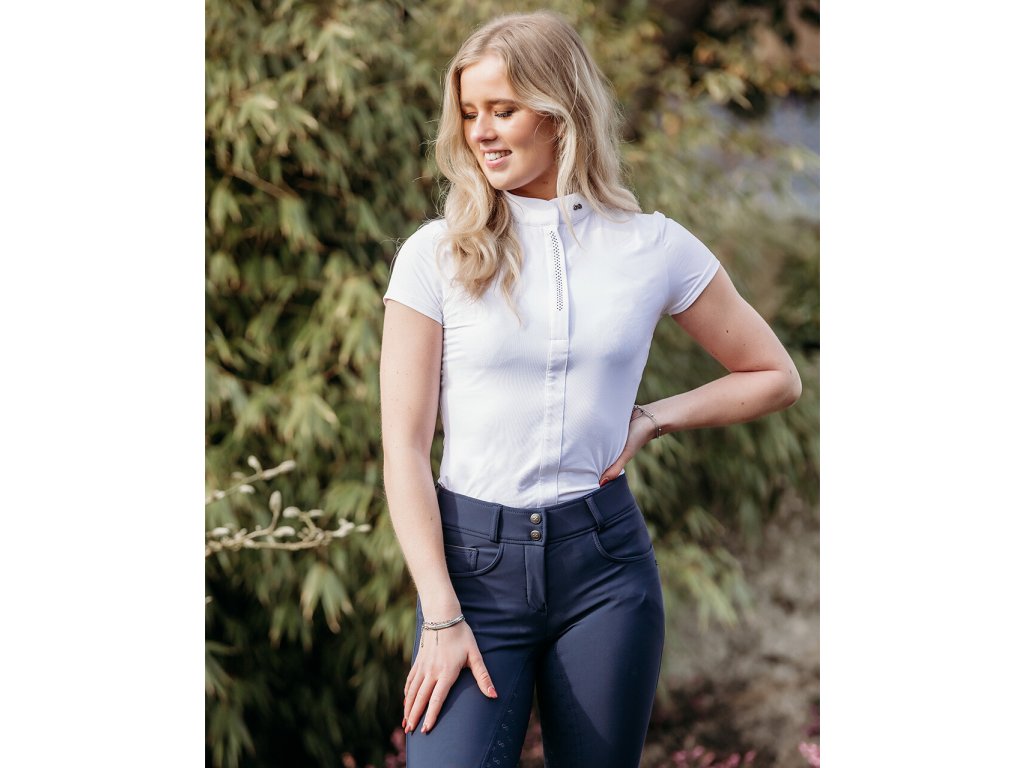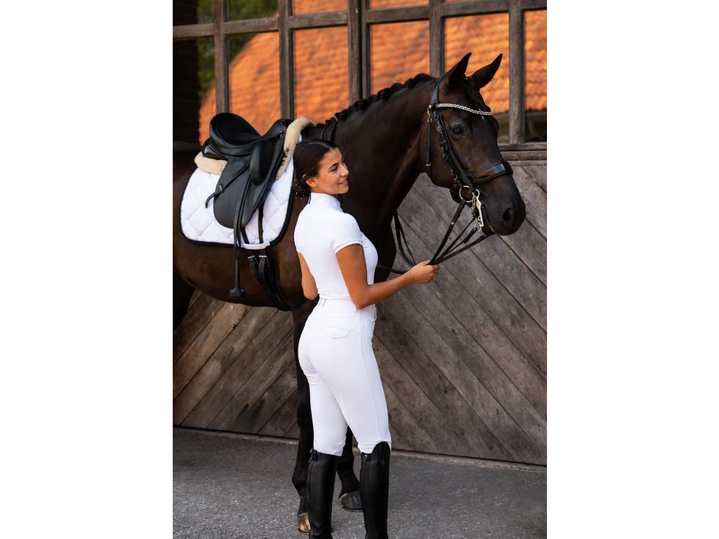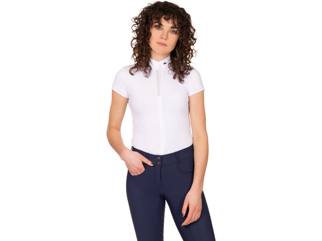 Veľmi kvalitné tričko PerformNow vhodné na preteky. Je vyrobené z veľmi pohodlného materiálu, ktorý skvele odvádza vlhkosť a poskytuje naviac aj ochranu pred UV žiarením. Golier sa dá rýchlo a jednoducho zapnúť pomocou magnetu (MagnetTEQ). Tričko je vybavené najnovšou technológiou Qi-tex®. Ide o odrážanie telesného tepla späť formou infračerveného žiarenia. Táto technológia podporuje zvýšenie krvného obehu a rýchlejšie zahrievanie svalov.Tričko je zdobené elegantnými trblietavými kamienkami a malým logom PresTeq na golieri.