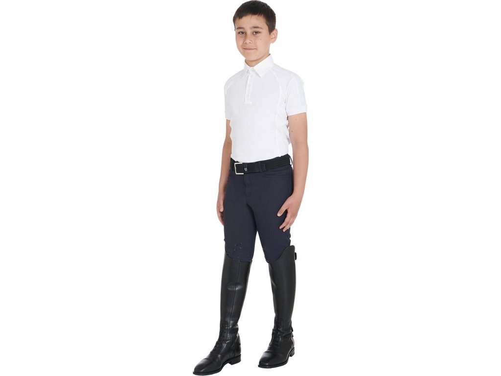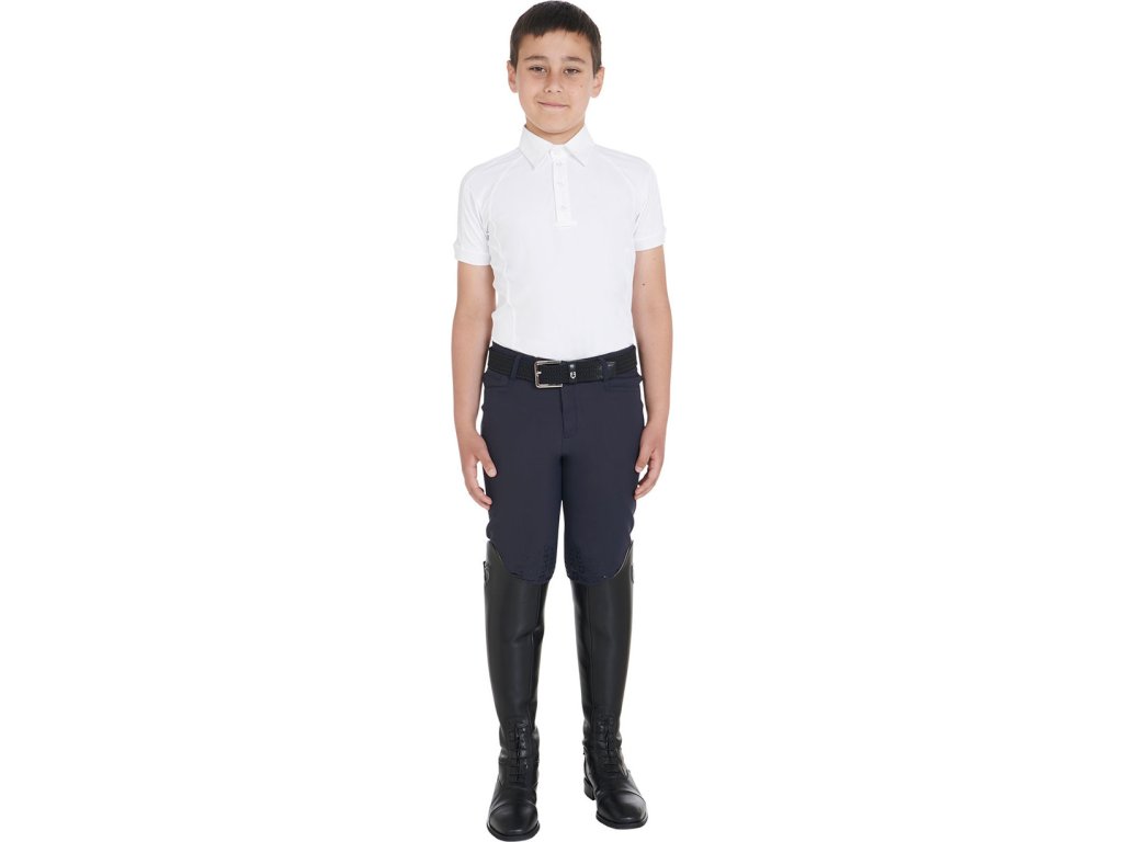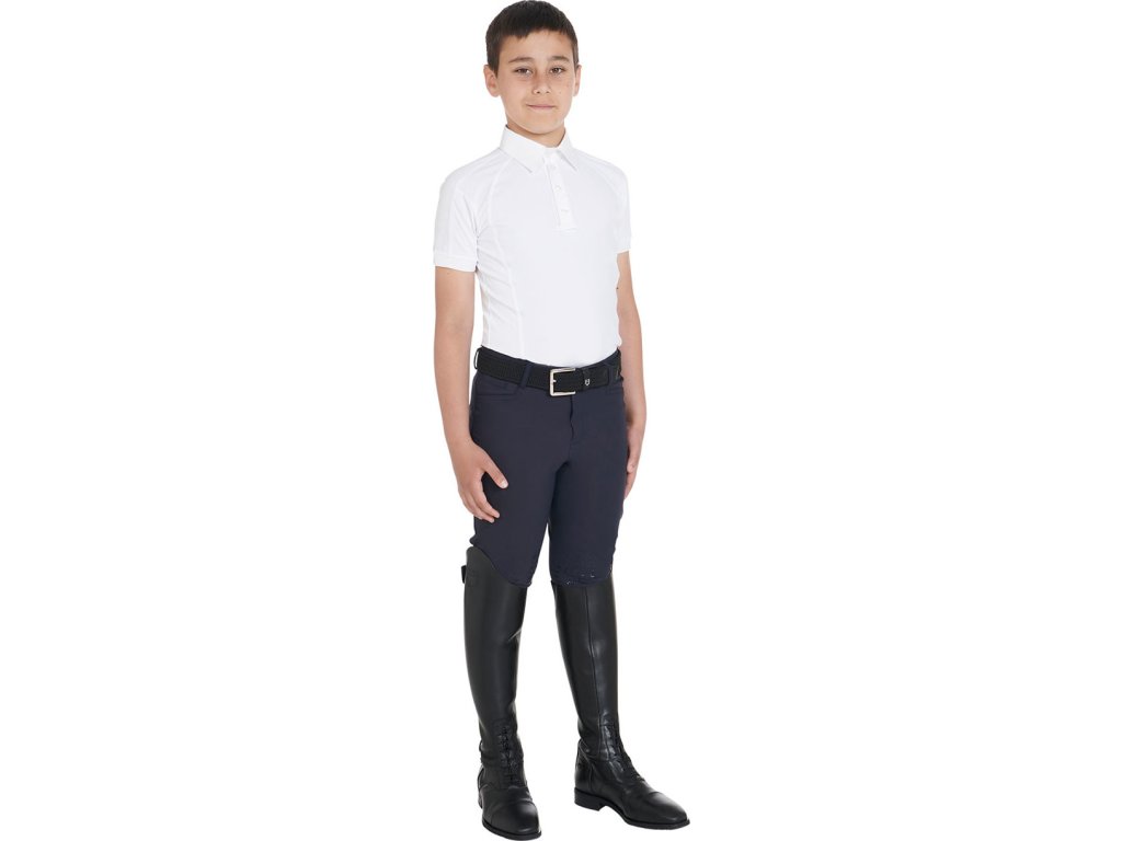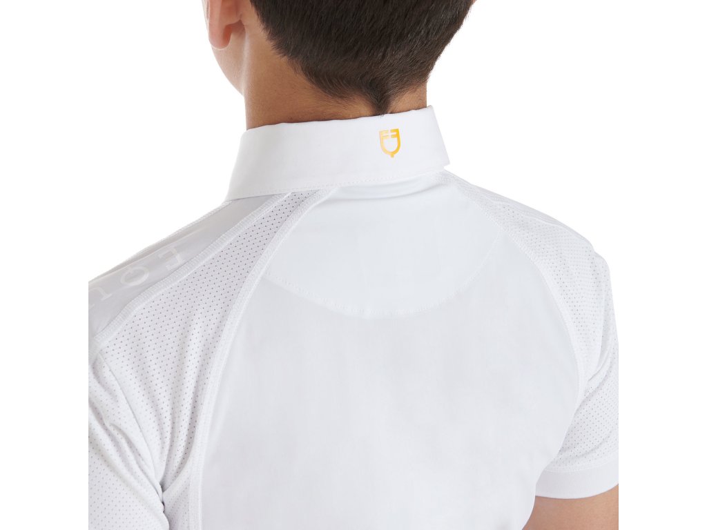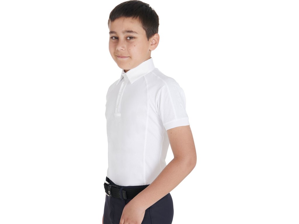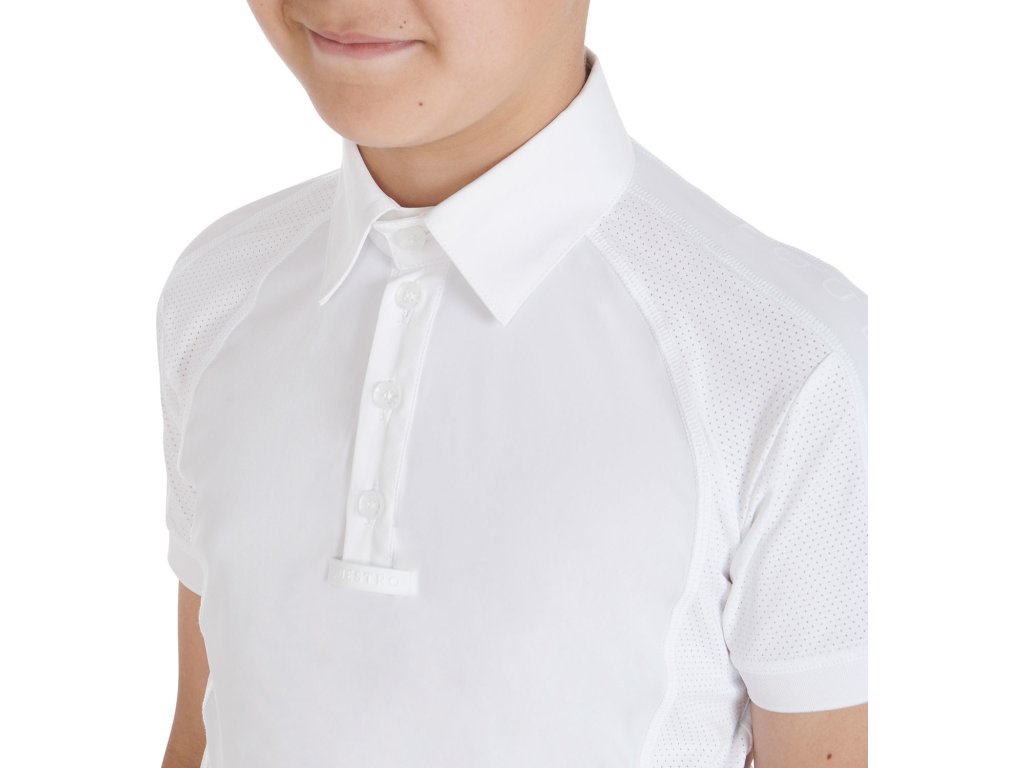 Vysokokvalitné polo tričko slim fit strihu s krátkymi rukávmi, ideálne na preteky a každodenný tréning. Vyrobené z priedušnej strečovej tkaniny a sieťoviny umiestnenej na bokoch. Perfektne sedí a poskytuje úplnú voľnosť pohybu. Zapína sa na štyri gombíky, má golier s logom Equestro a nápis na ľavom rukáve. K dispozícii aj v greige farbe. Vo veľkostiach 8, 10, 12 a 14 rokov.