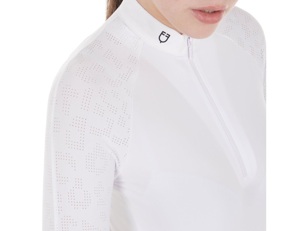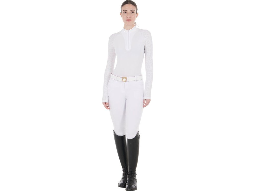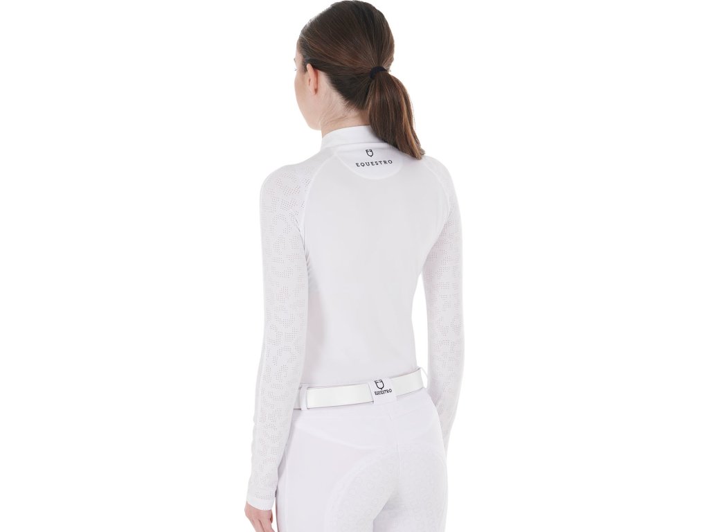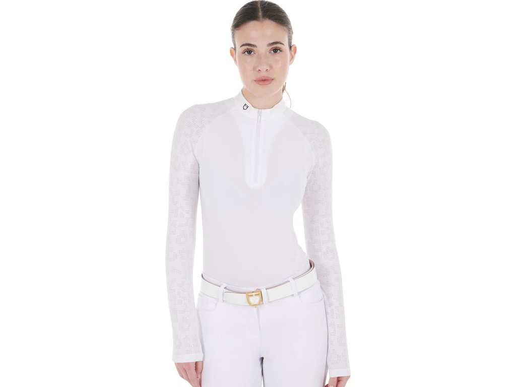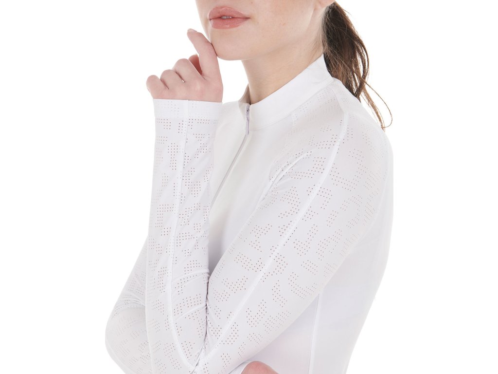 Tričko súťažné Tulle Stretch Equestro, s dlhým rukávom, dámske, biele