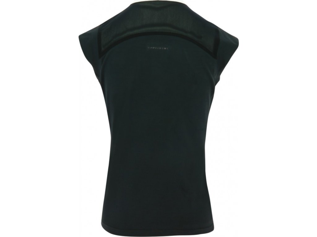 Súťažné tričko bez rukávov je vyrobené z pleteného polyesteru, ktorý kombinuje ľahkosť a odolnosť. Ultraľahká a priedušná pletenina rýchlo odvádza vlhkosť, udržuje vás v suchu a poskytuje maximálne pohodlie pri jazde. Tričko zaisťuje optimálnu voľnosť pohybu, takže sa môžete sústrediť na výkon. Sieťované švy na ramenách a bokoch podporujú ventiláciu a zvyšujú komfort. Elegantný detail predstavuje inkrustovaný štras na vonkajšom gombíkovom pútku, ktorý dodáva tričku sofistikovaný a štýlový vzhľad.