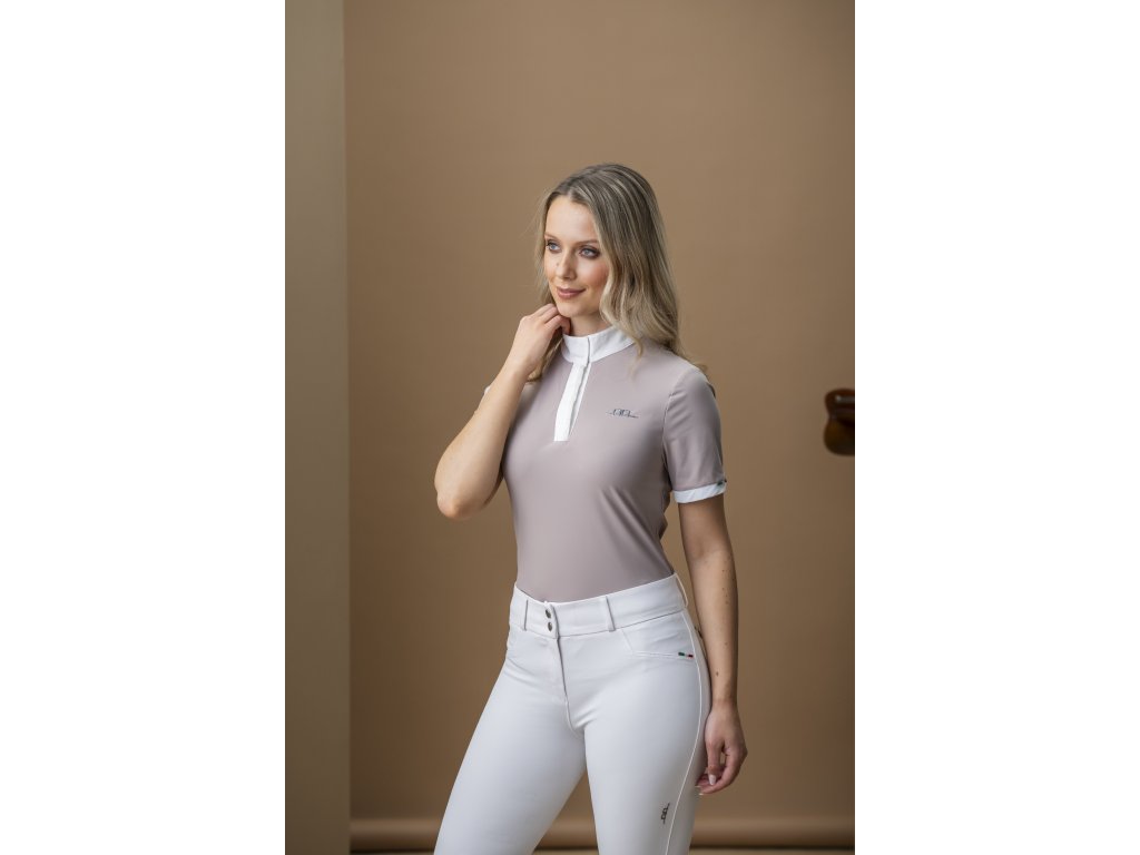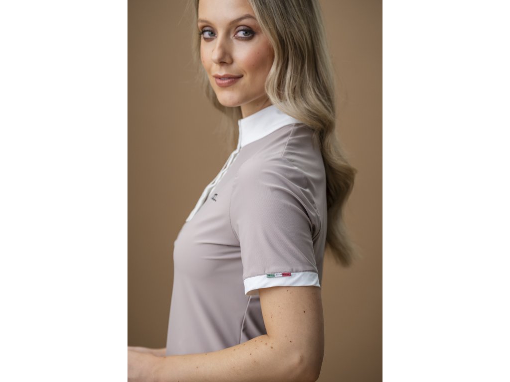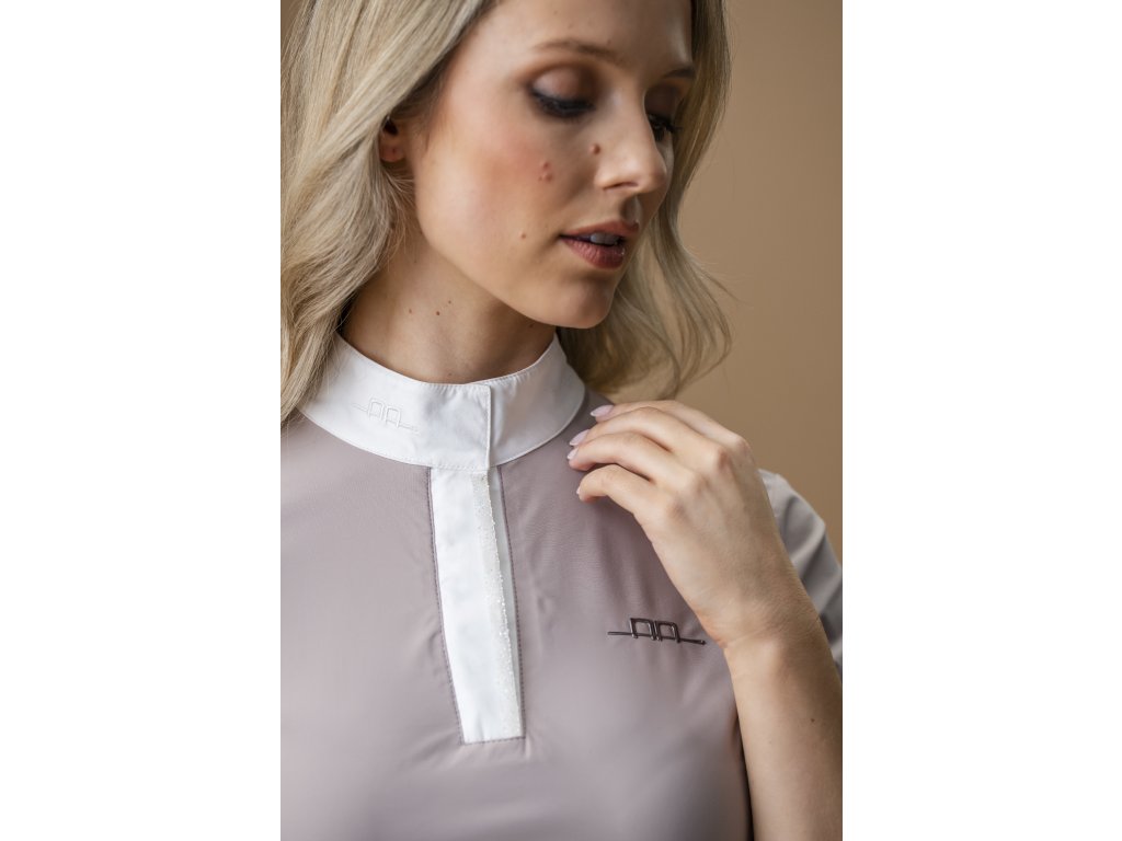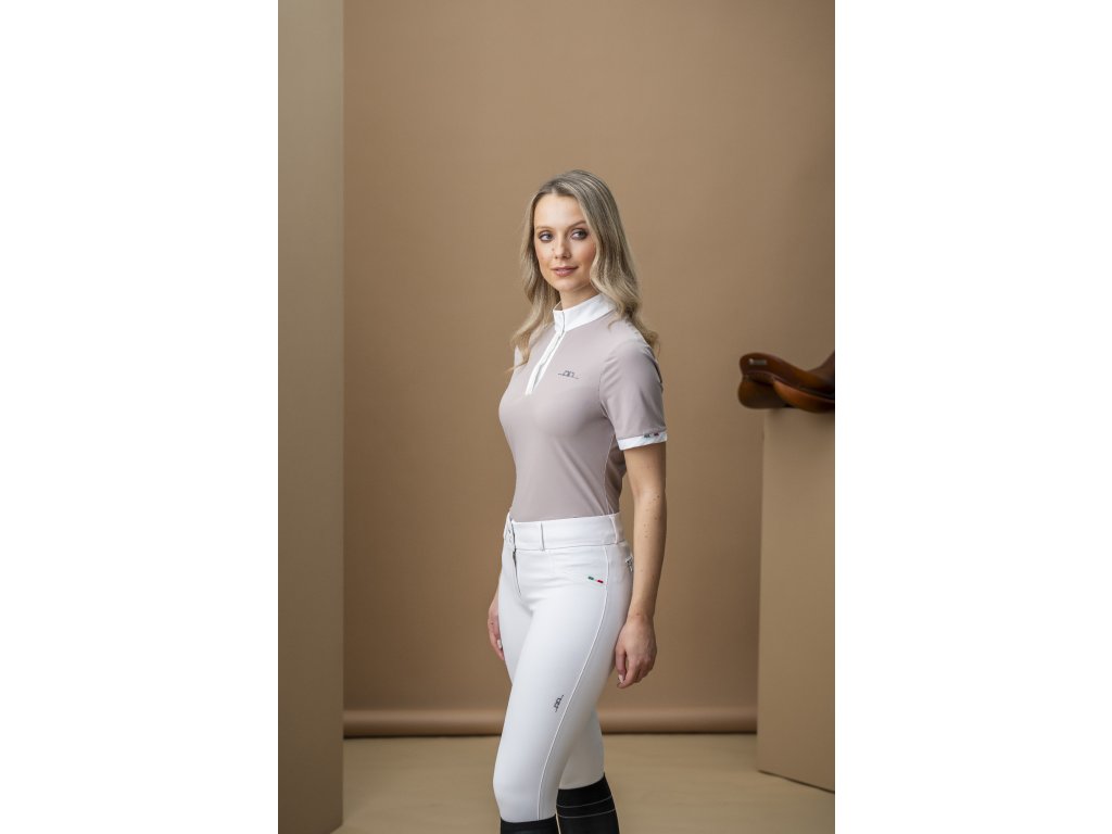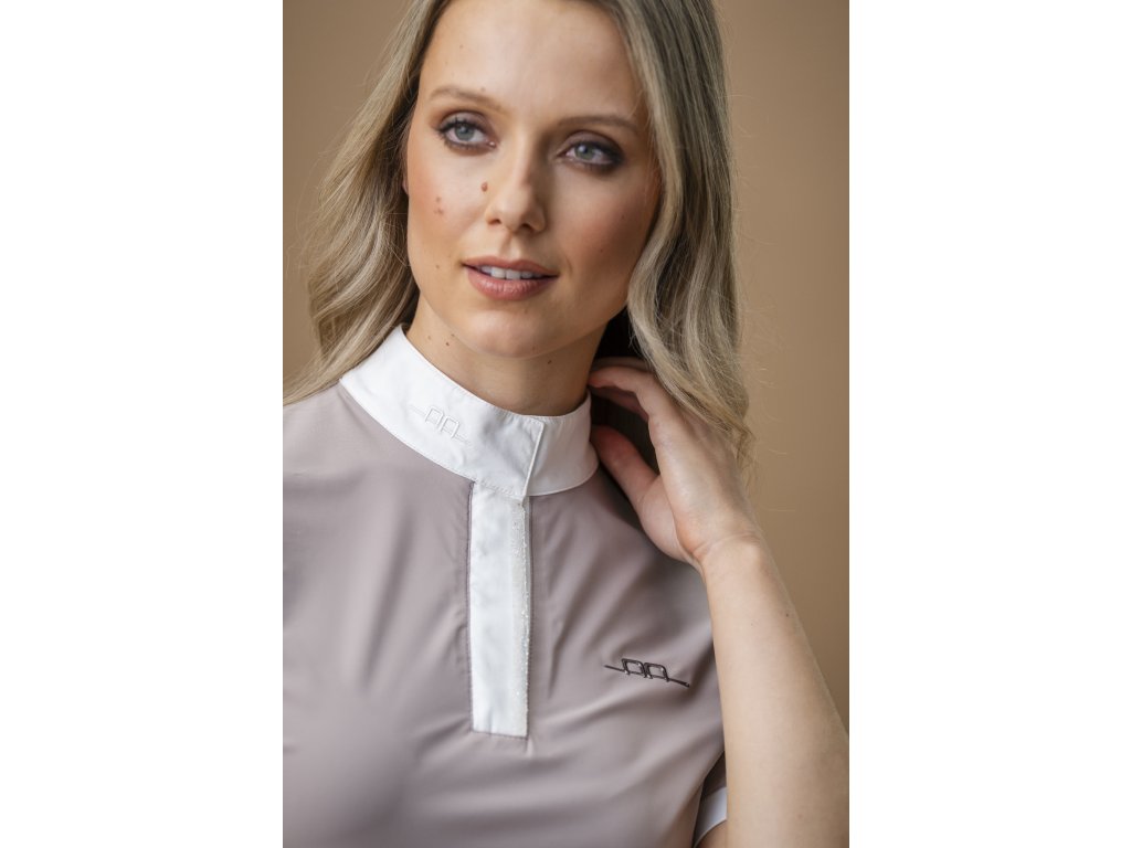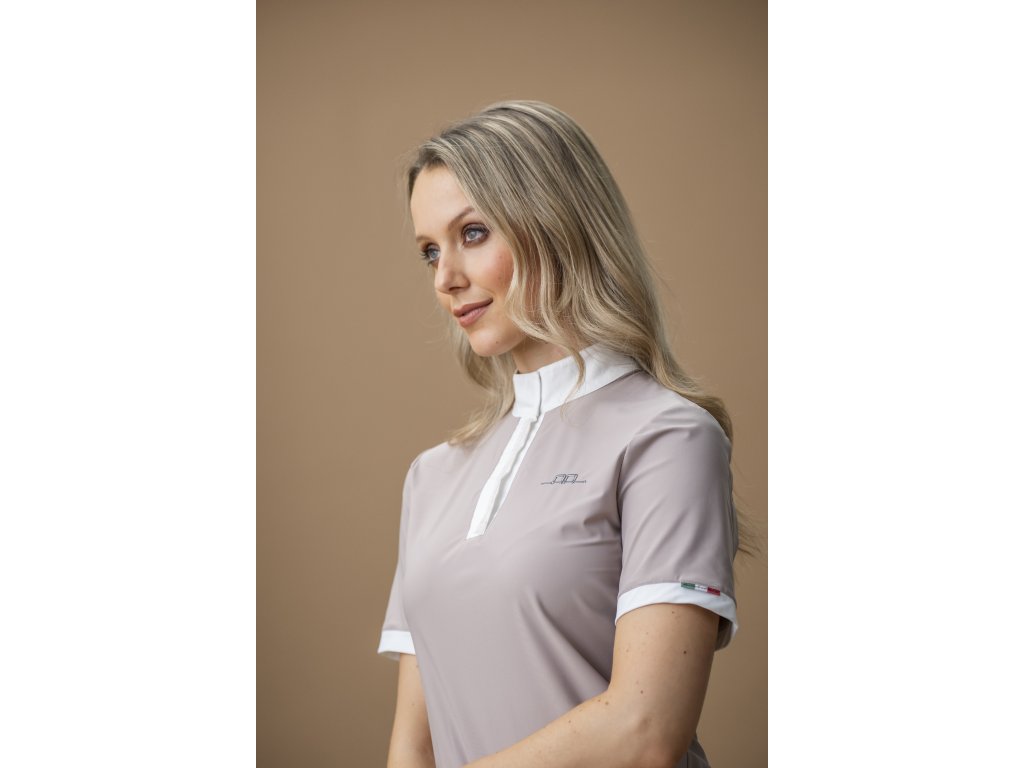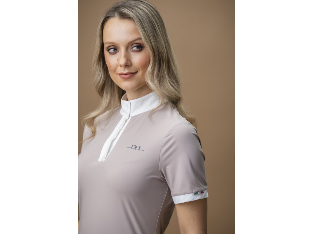 Tričko na preteky Mira je vyrobené z technickej štvorsmerne elastickej tkaniny, ktorá poskytuje voľnosť pohybu a zároveň je vysoko priedušná a odvádza vlhkosť. Materiál zaisťuje mäkký a príjemný pocit na pokožke a chráni proti slnku vďaka UPF 50+ úprave. Dizajn trička je elegantný vďaka golieru s magnetickým zapínaním, pútku na kravatu a neviditeľnému zipsu. Priliehavý strih kopíruje siluetu postavy a zaisťuje elegantný vzhľad pri každom pohybe.
