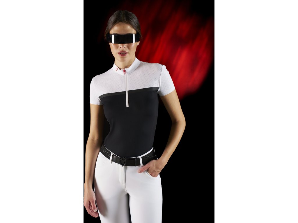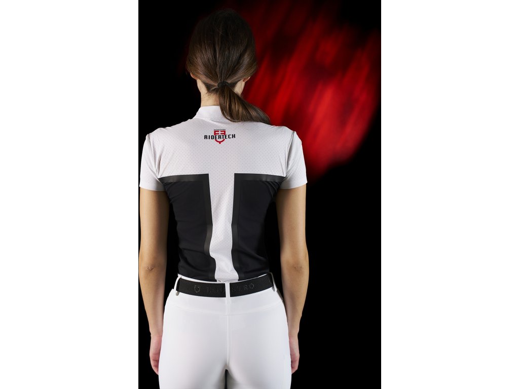 Tričko súťažné Perforated RiderTech Equestro, s krátkym rukávom, dámske, white/black