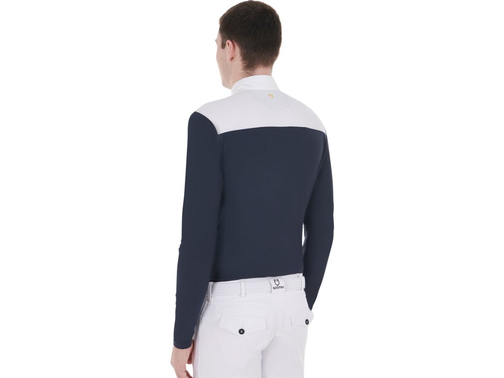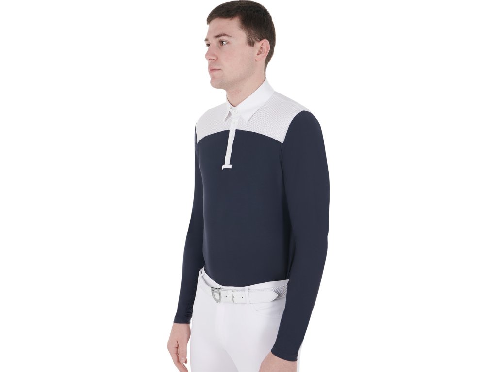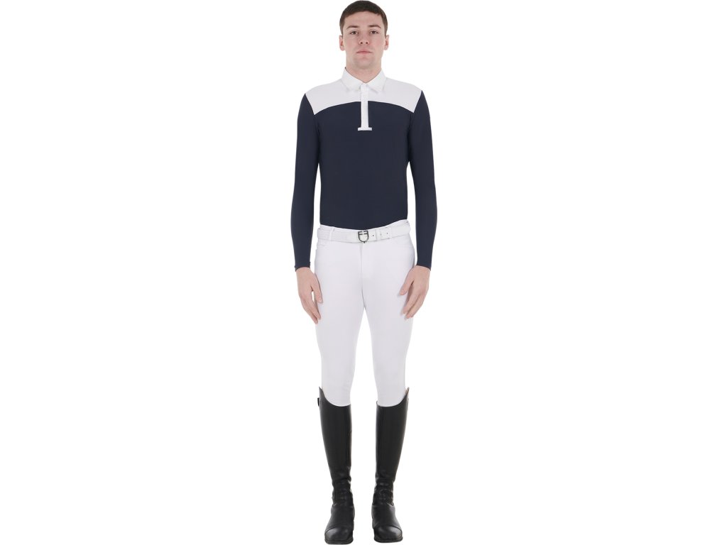Kvalitné pánske tričko na preteky s dlhým rukávom z priedušnej technickej látky. Vďaka slim fit strihu a elastickému materiálu tričko perfektne sedí a poskytuje maximálne pohodlie. Zapína sa na tri gombíky a má golier na gombík. Zdobené logom Equestro vzadu pod golierom.