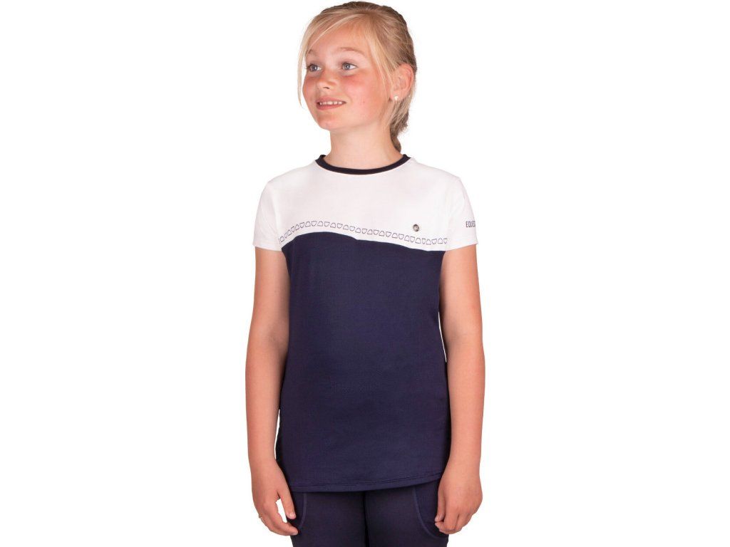 Veľmi kvalitné detské tričko vyrobené z rýchloschnúceho materiálu. Je vybavené maximálne priedušnou sieťovinou, vďaka ktorej je tričko ideálne na teplé letné dni. Zdobené je nápisom “Equestrian Sports” na ľavom ramene a malým znakom Q na hrudi. Dvojfarebné prevedenie dodáva tričku športový vzhľad. K dispozícii aj v ružovej farbe a vo veľkostiach pre dospelých.Súčasťou kolekcie jar/leto 2023.