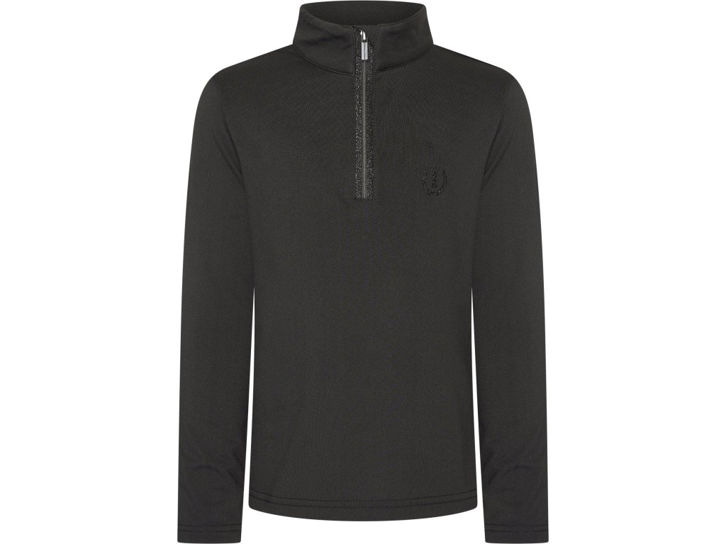 Detské tričko Abby spája funkčnosť s výrazným a hravým dizajnom, ktorý si mladé jazdkyne zamilujú. Je vyrobené z príjemného, pružného džersejového materiálu, ktorý zaisťuje pohodlie po celý deň pri jazdení aj pri práci v stajni. Dlhé rukávy sú ideálne do chladnejších dní alebo ako vrstva pod vestu či bundu. Polovičný zips je doplnený trblietavým detailom a ochranou brady pre vyšší komfort.