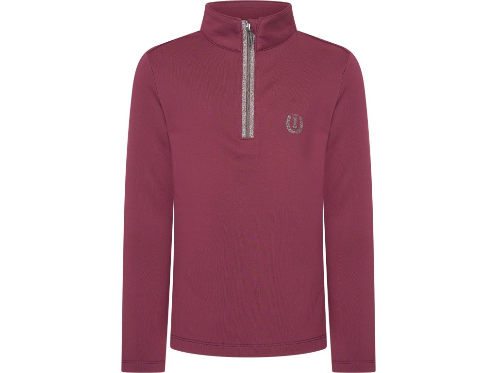 Detské tričko Abby spája funkčnosť s výrazným a hravým dizajnom, ktorý si mladé jazdkyne zamilujú. Je vyrobené z príjemného, pružného džersejového materiálu, ktorý zaisťuje pohodlie po celý deň pri jazdení aj pri práci v stajni. Dlhé rukávy sú ideálne do chladnejších dní alebo ako vrstva pod vestu či bundu. Polovičný zips je doplnený trblietavým detailom a ochranou brady pre vyšší komfort.