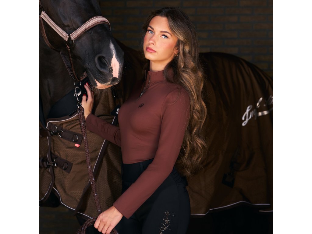 Tričko Amy je štýlový a pohodlný kúsok, ktorý skvele doplní jazdecký outfit do stajne aj na voľný čas. Vďaka polovičnému zipu s vyšším golierom pôsobí moderne a zároveň prakticky. Elastický materiál sa dokonale prispôsobí pohybu a jemne česaná vnútorná strana poskytuje príjemné teplo a komfort po celý deň. Ochrana brady pri zipse zvyšuje pohodlie pri nosení a decentné logo na hrudi podčiarkuje športovo elegantný vzhľad trička.