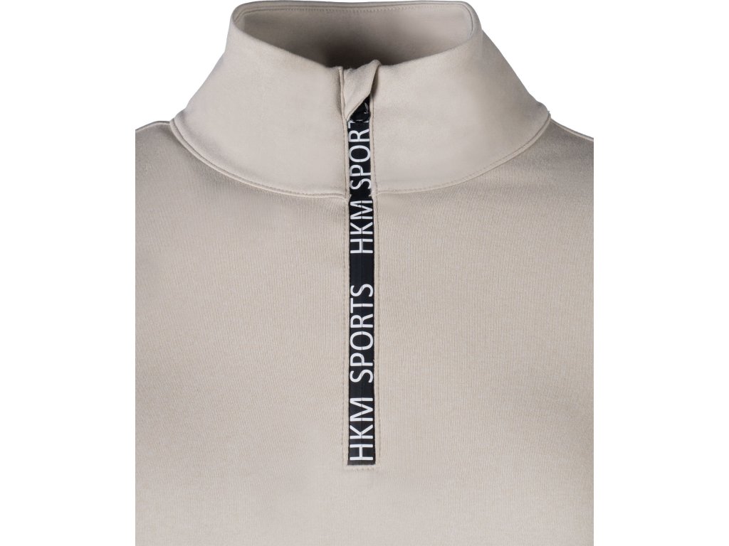 Štýlové funkčné tričko s dlhým rukávom a golierom na zips je ideálne na šport aj voľný čas. Je vyrobené z jemného, hladkého a elastického materiálu, ktorý sa perfektne prispôsobí postave a poskytuje maximálny komfort pri nosení. Vďaka vnútornému česanému povrchu je materiál príjemne hrejivý a pohodlný aj počas chladných dní. Praktický predný zips uľahčuje obliekanie aj vyzliekanie a je ozdobený nápisom HKM SPORTS. Celkový dizajn dopĺňajú módne ozdobné švy, ktoré podčiarkujú športový vzhľad trička. Možno prať v práčke pri 30 °C.