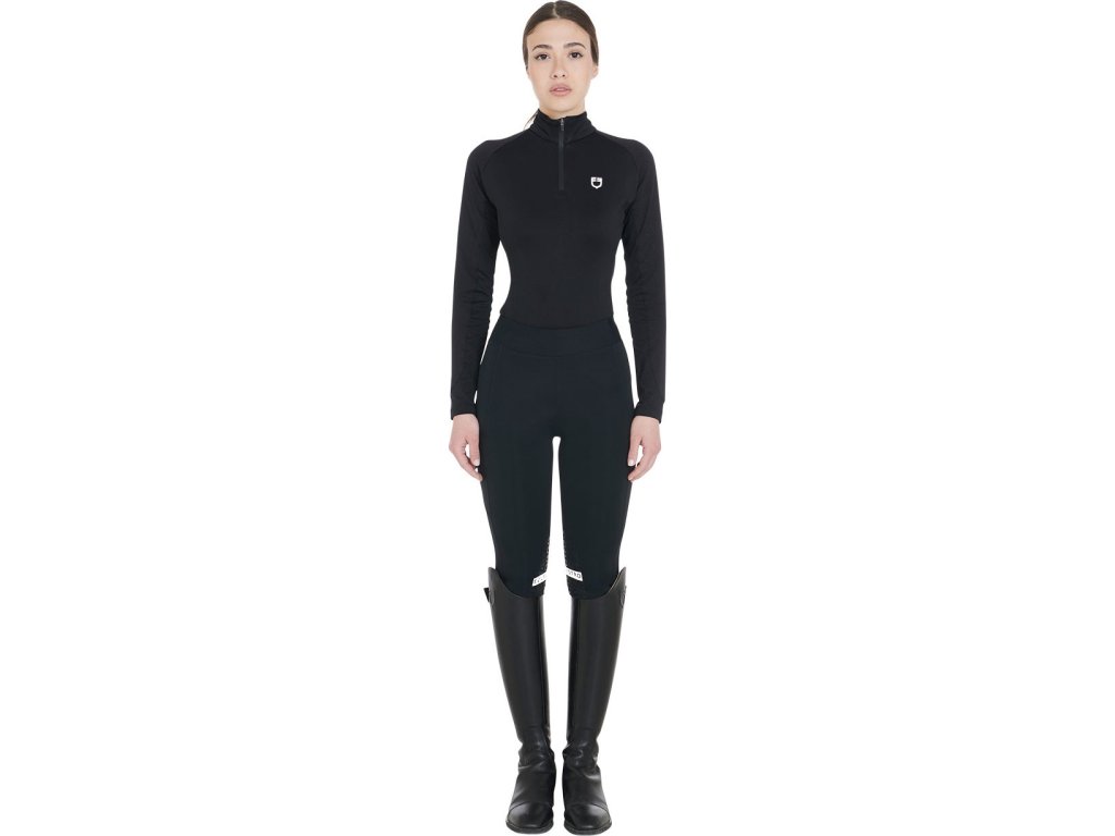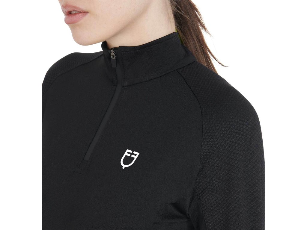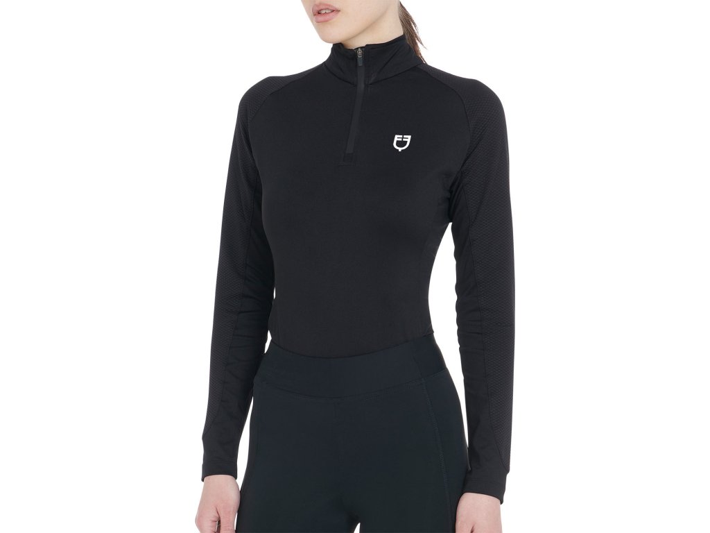 Vysokokvalitné funkčné tričko vhodné na každodenný tréning aj voľnočasové aktivity. Je vyrobené z priedušnej a pohodlnej tkaniny, ktorá efektívne podporuje odparovanie a rozptyl potu a zároveň poskytuje ochranu pred chladom. Dlhý rukáv zo strečového materiálu zaručuje výbornú pružnosť a maximálnu voľnosť pohybu. Tričko je vybavené praktickým predným zipsom a zdobí ho logo Equestro na ľavej strane hrudníka.