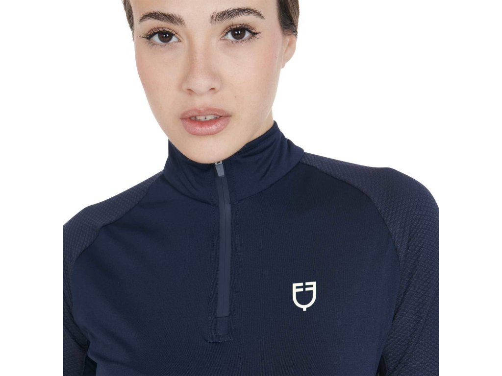 Vysokokvalitné funkčné tričko vhodné na každodenný tréning aj voľnočasové aktivity. Je vyrobené z priedušnej a pohodlnej tkaniny, ktorá efektívne podporuje odparovanie a rozptyl potu a zároveň poskytuje ochranu pred chladom. Dlhý rukáv zo strečového materiálu zaručuje výbornú pružnosť a maximálnu voľnosť pohybu. Tričko je vybavené praktickým predným zipsom a zdobí ho logo Equestro na ľavej strane hrudníka.