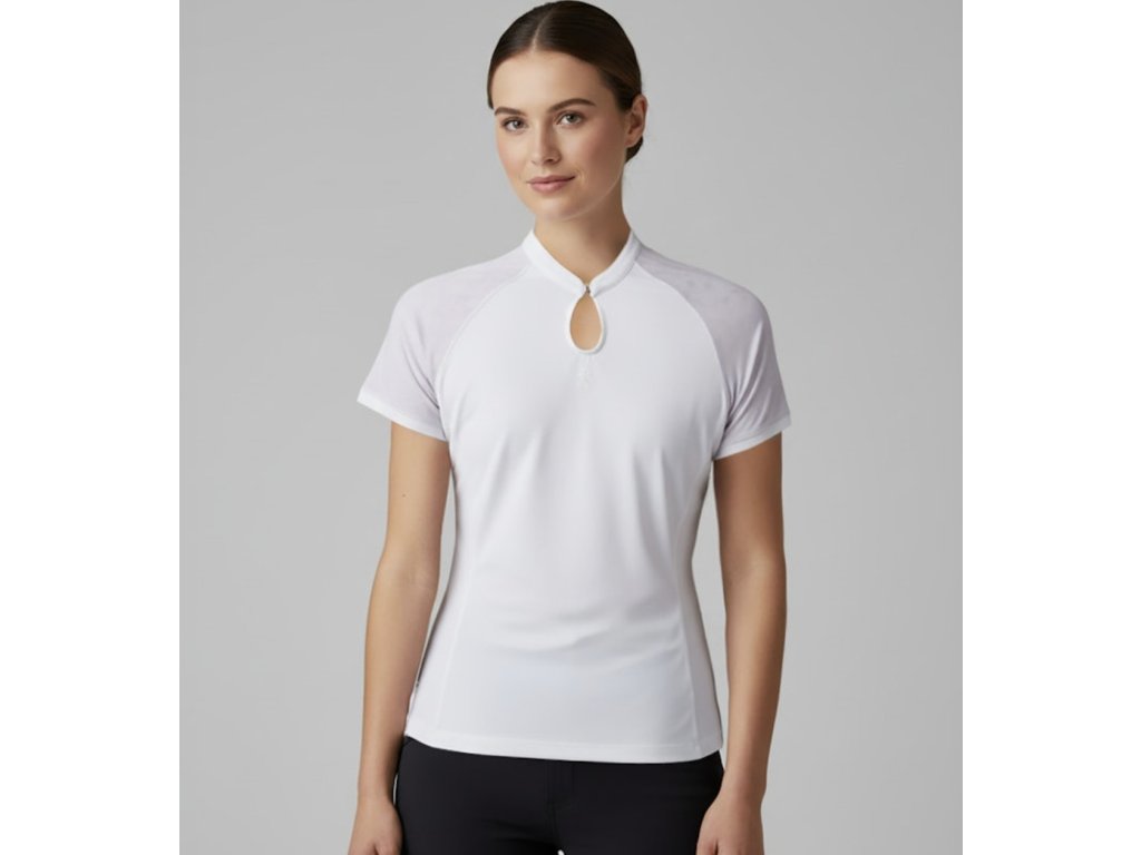 Dámske tričko, ktoré je navrhnuté pre jazdkyne, ktoré požadujú komfort a štýl. Sieťované panely na rukávoch zaisťujú vysokú priedušnosť a pohodlie, takže zostanete v chlade aj počas náročného tréningu či súťaže. Tričko má lichotivý športový strih a elegantné zapínanie na háčik a očko v prednej časti, čo dotvára decentný, ale moderný dizajn. Silikónové logo PS dodáva štýlový nádych.