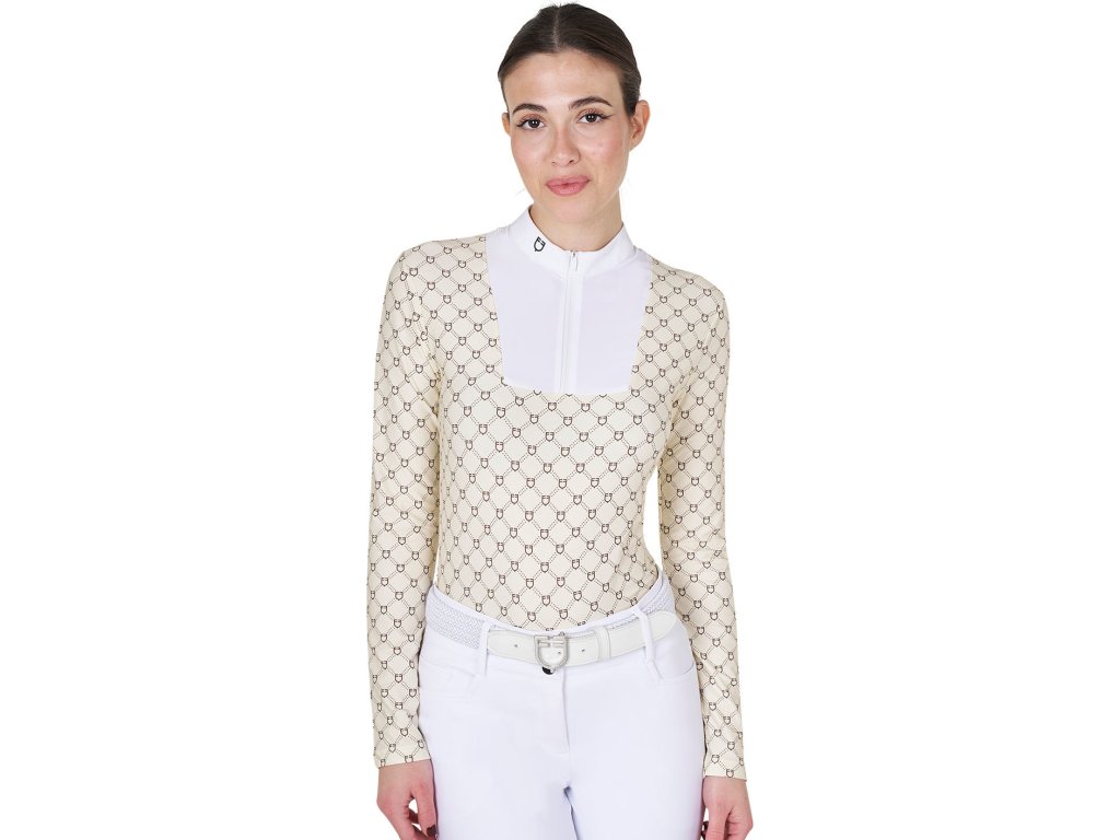 Tričko súťažné Monogram Equestro, dámske, antique white/walnut