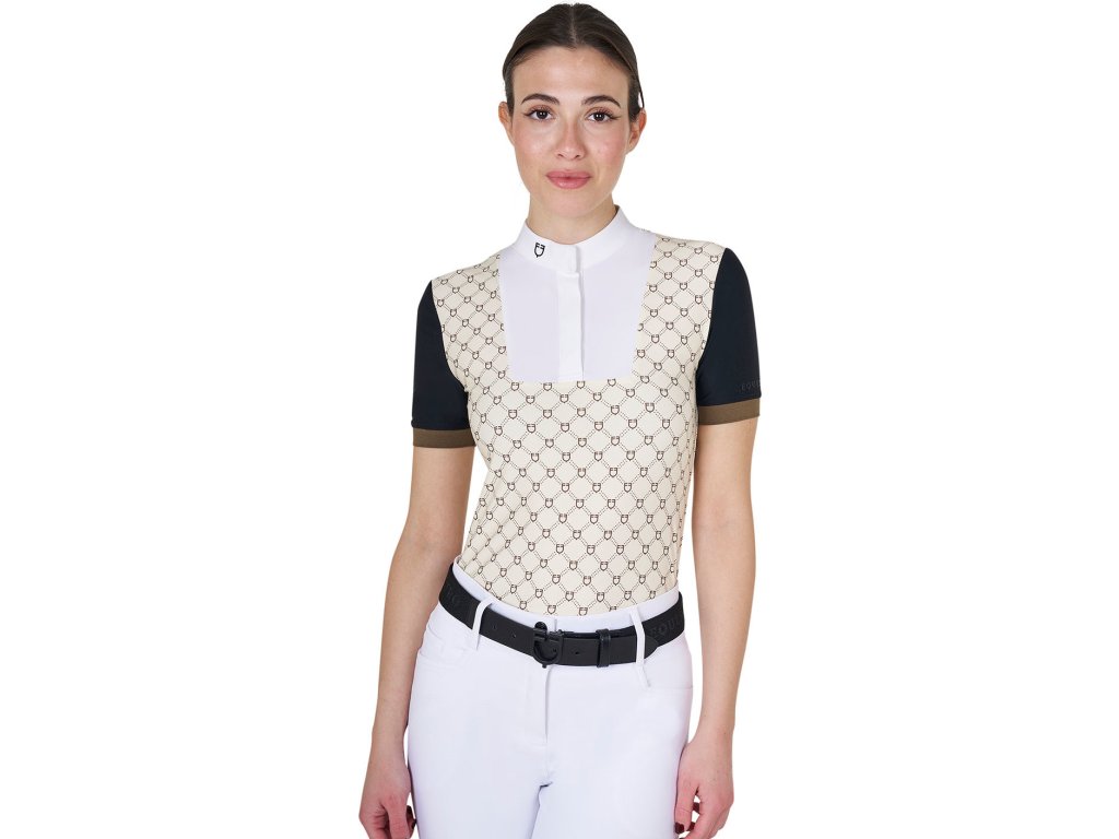 Tričko súťažné Monogram Print Equestro, dámske, antique white/walnut
