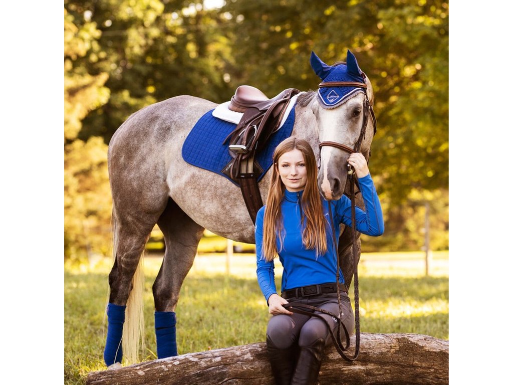 Kvalitná ušaňa proti hmyzu je navrhnutá s dôrazom na ochranu, pohodlie aj elegantný vzhľad. Predná časť ušane je vyrobená zo 100% bavlny a spracovaná ručným háčkovaním so štvorsmernou pružnosťou, vďaka čomu sa perfektne prispôsobí tvaru hlavy koňa. Luxusné dvojito krútené lemovanie zaisťuje, že ušaňa perfektne sedí pod uzdečkou, je stabilná a neprekáža pri práci. Celkový vzhľad podčiarkuje decentné vyšívané logo LeMieux. Uši sú vyrobené z mäkkého a pohodlného elastanového materiálu, ktorý chráni pred hmyzom, prachom aj rušivými vplyvmi, bez toho, aby obmedzoval komfort alebo pohyb. Ideálna voľba na každodenné jazdenie aj preteky.