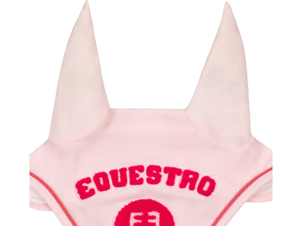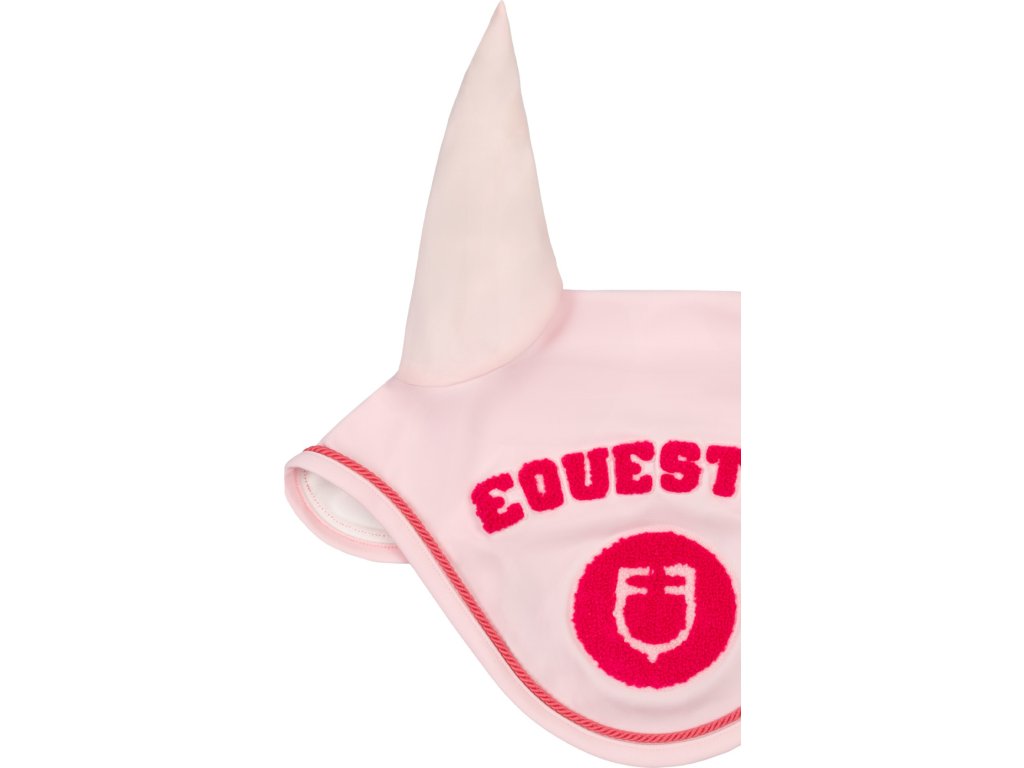 Ušaňa na uši z vysoko kvalitnej technickej tkaniny, ktorá zaisťuje priedušnosť a zároveň pomáha tlmiť vonkajší hluk, aby kôň zostal sústredený a nerušený pri práci. Spája funkčnosť so štýlom a je navrhnutá pre dokonalé usadenie aj optimálnu ochranu. Dominantným prvkom je nápis Equestro a štítok s logom výrobcu v univerzitnom štýle.