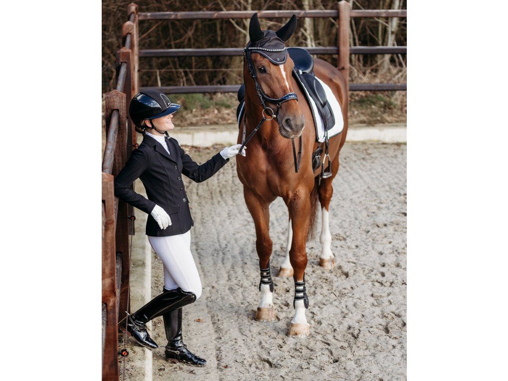 Veľmi kvalitná ušaňa, ktorá slúži ako ochrana pred otravným hmyzom a zároveň znižuje hluk z okolia. To vedie k lepšiemu sústredeniu koňa a k podávaniu lepšieho výkonu. Na zadnej strane uší má sieťovaný pás, ktorý dokonale odvádza prebytočné teplo. Zdobená tenkým strieborným lemom, ktorý jej dodáva elegantný vzhľad. K dispozícii v modrej a čiernej farbe.