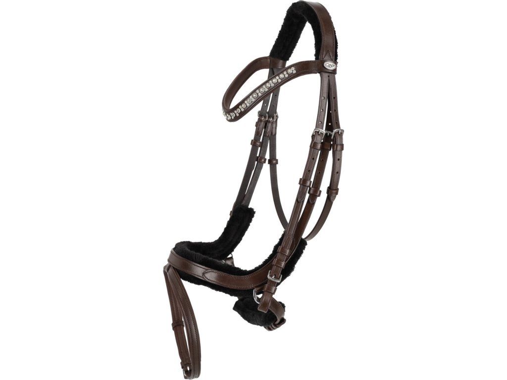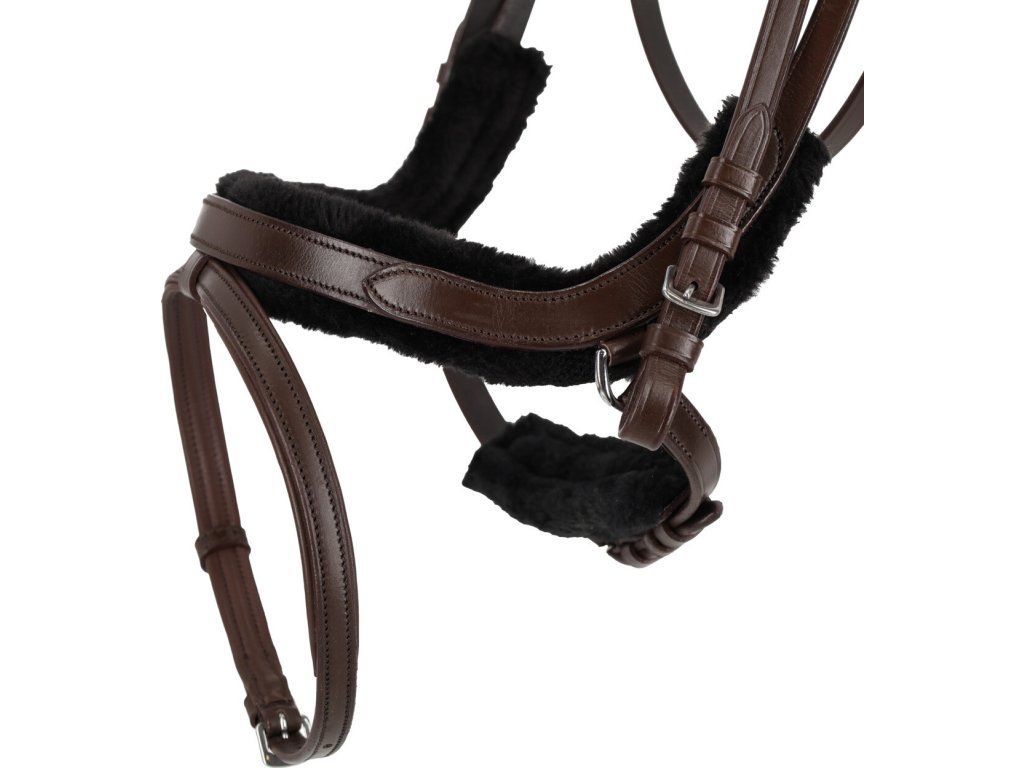 Anatomická uzdečka s odnímateľným mäkkým polstrovaním zo syntetickej kožušiny je navrhnutá s dôrazom na komfort koňa. Anatomicky tvarovaný nánosník v kombinácii s mierne vykrojeným nátylníkom rovnomerne rozkladá tlak a uľavuje citlivým oblastiam hlavy. Polstrovanie zo syntetickej kožušiny je odnímateľné pomocou suchého zipsu a možno ho prať v práčke. Čelenka v tvare vlny dodáva uzdečke elegantný vzhľad, zatiaľ čo mäkké polstrovanie pod čelenkou a podpínkou poskytuje vyšší komfort. Dvojito nastaviteľný podhrdelník umožňuje presné prispôsobenie veľkosti. Uzdečka je vyrobená z kvalitnej kože a doplnená odolným kovaním z nerezovej ocele. Súčasťou uzdečky sú zodpovedajúce plátené oťaže. Na zachovanie kvality kože odporúčame uzdečku čistiť vhodným čističom a následne ošetriť prípravkom na kožu. Použitie oleja sa neodporúča, pretože môže viesť k uvoľneniu švov. Pred použitím na pretekoch odporúčame overiť u príslušnej národnej federácie, či je tento typ uzdečky povolený.