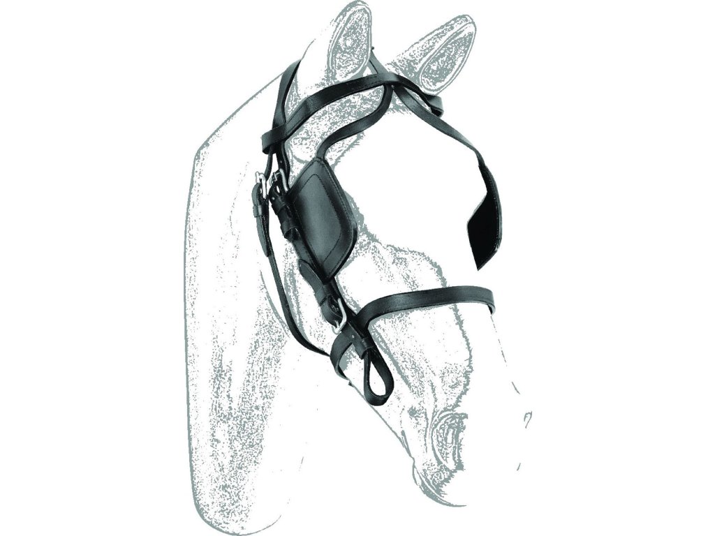 Uzdečka pre kočiarové postroje, s klapkami. Vyrobené z odolnej a kvalitnej kože. Dodáva sa bez zubadla. V čiernom prevedení. K dispozícii sú veľkosti Mini Shetland, Shetland, Pony, Cob a Full.