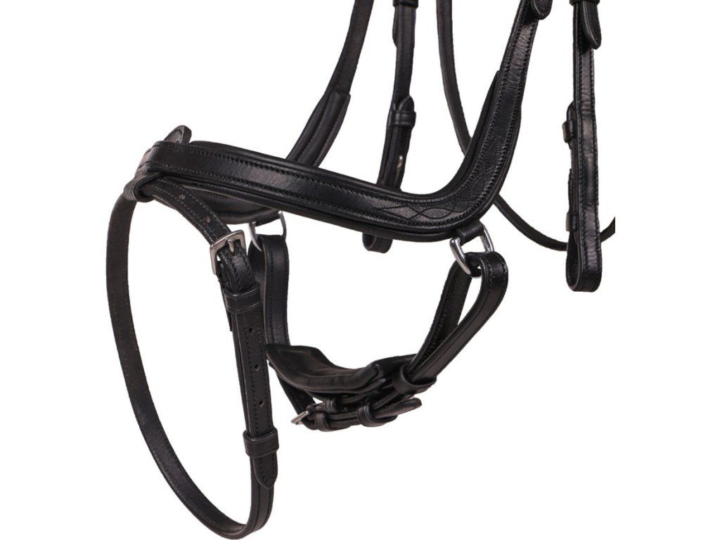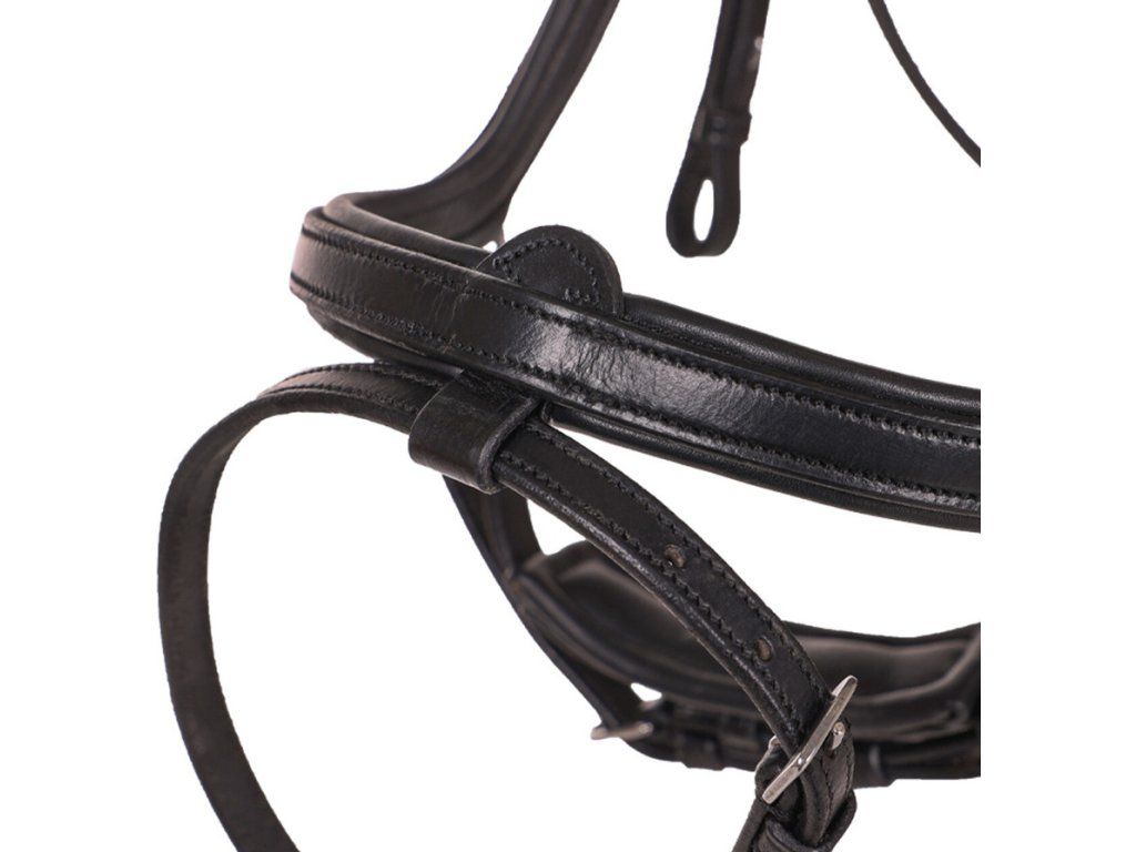 Anatomicky tvarovaná uzdečka s mäkkým polstrovaním.Anatomický tvar sa vyhýba citlivým bodom na hlave koňa. Špeciálne navrhnutý zakrivený tvar nánosníka zabezpečuje, že leží vyššie na nose a vyhýba sa citlivej spodnej časti. Anatomický nátylník zaisťuje maximálnu voľnosť uší a rovnomerne rozkladá tlak. Okrem toho netlačí na zuby koňa, čo zabraňuje podráždeniu v ústach. Uzdečka je vyrobená vo veľmi jednoduchom a decentnom vzhľade.