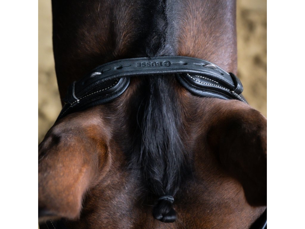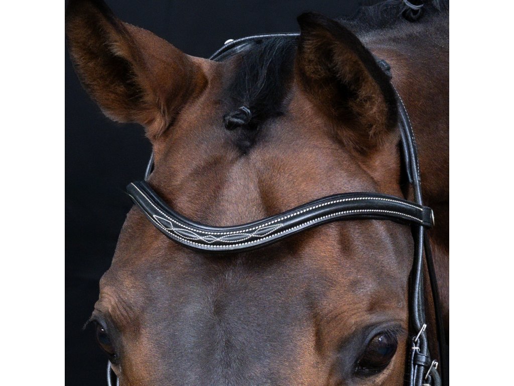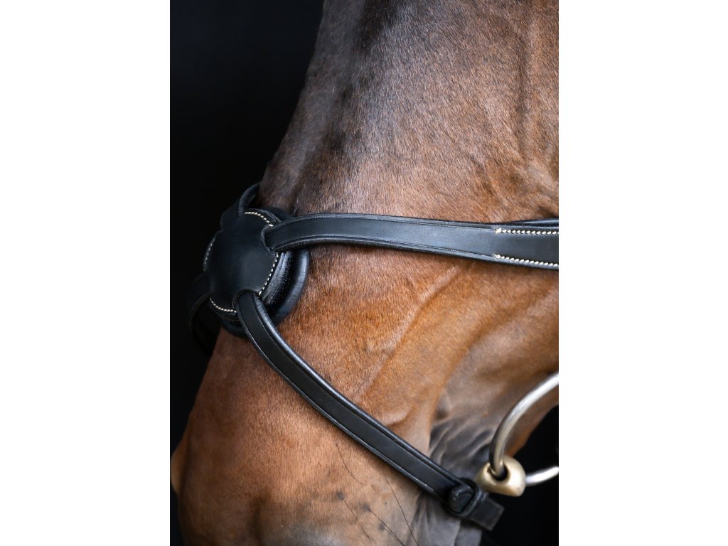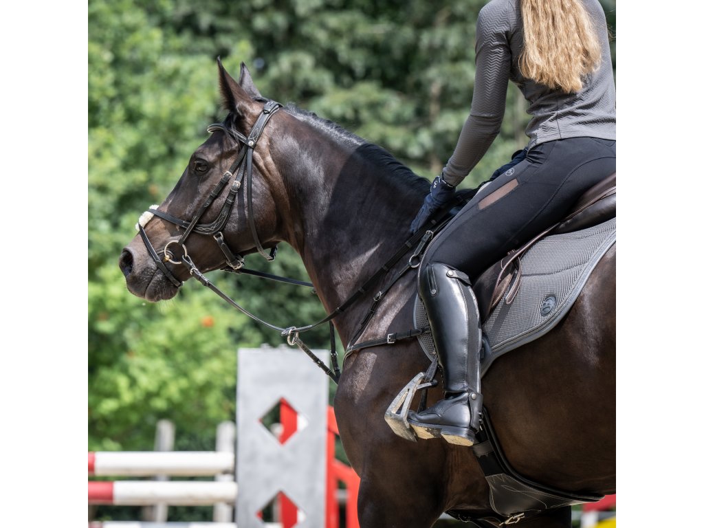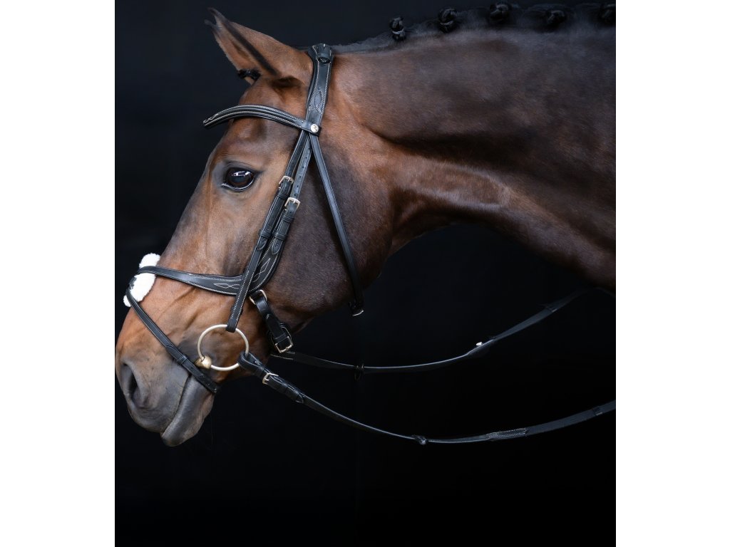 Jste připraveni vzlétnout? Pak zažijte kožené vybavení na úrovni! Uzdečka je vyrobena z americké kůže, která vyniká svou mimořádně vysokou kvalitou a měkkým povrchem. Je velmi příjemná a navíc je také rostlinně činěná, což je z hlediska ekologického přístupu příznivější. Kontrastní švy svědčí o nadčasovém stylu. Individuálně nastavitelný a měkce polstrovaný mexický nánosník zajišťuje optimální rozložení tlaku. Moderní a flexibilní design navíc umožňuje snadné a rychlé odepnutí a připnutí podbradního a nátylního řemínku dle potřeby. Kontrastní švy svědčí o nadčasovém stylu. Dodávaná včetně otěží se zarážkami.