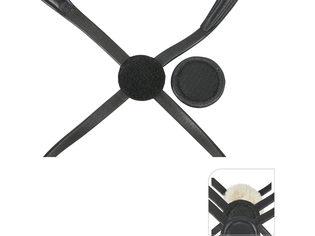 - Polstrování ze syntetického beránku: Maximálně se přizpůsobí a je obzvláště šetrný k pokožce a srsti. Ideální pro koně s velmi citlivou pokožkou. Pro čištění jemně vykartáčujte a v případě potřeby vyperte na šetrný program při 30°C.