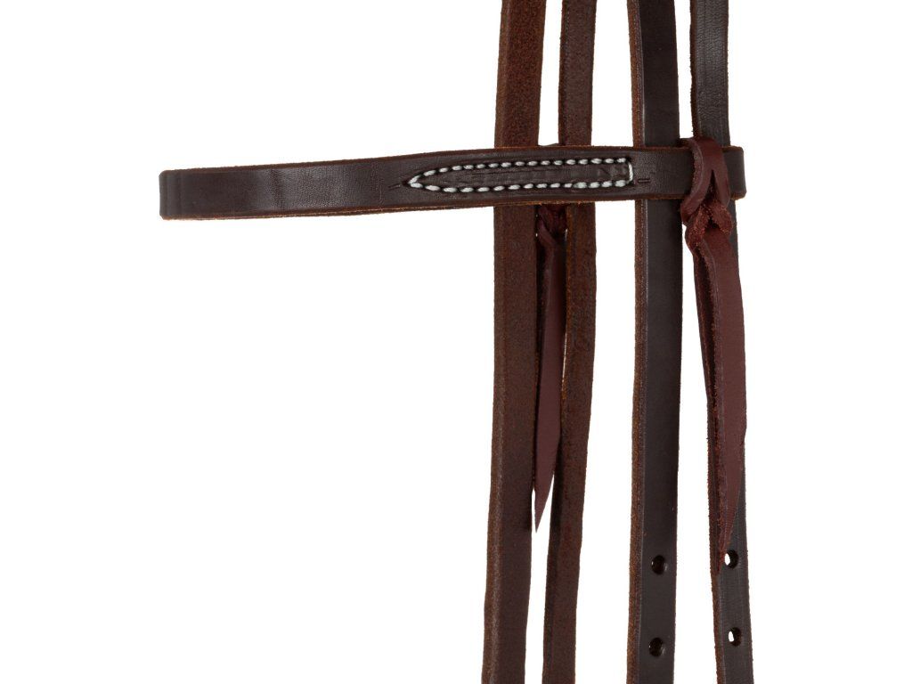 Kvalitná westernová uzdečka vyrobená z olejovanej kože. Je vybavená nastaviteľným podhrdelníkom a dá sa nastaviť aj na lícnici. S oceľovým kovaním. Dodávaná bez oťaží. K dispozícii v hnedej farbe a jednej veľkosti.