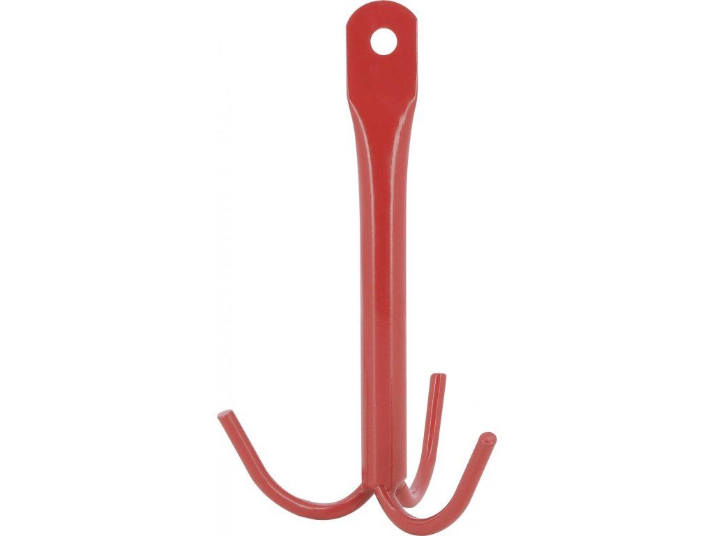 Univerzálny kovový vešiak s tromi háčikmi je praktickým doplnkom pre každú stajňu. Umožňuje prehľadné a bezpečné zavesenie uzdečiek, ohlávok, oťaží alebo iného vybavenia. Vďaka otvoru na klinec či skrutku sa ľahko pripevňuje na stenu. Jeho odolná kovová konštrukcia zaručuje dlhú životnosť aj pri každodennom používaní.