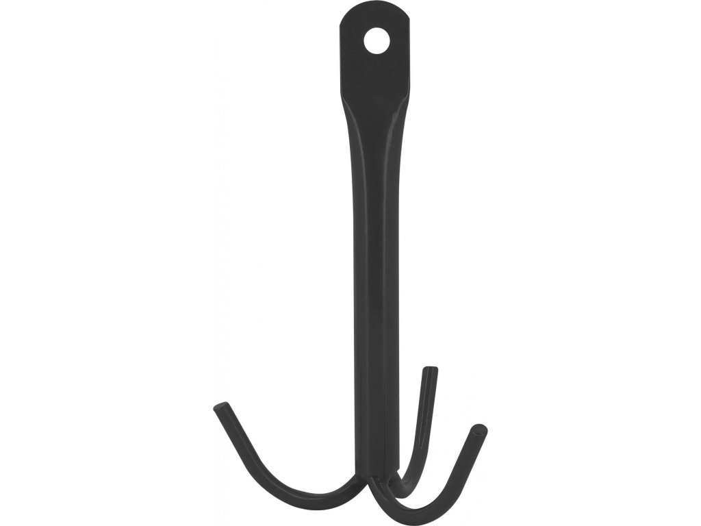 Univerzálny kovový vešiak s tromi háčikmi je praktickým doplnkom pre každú stajňu. Umožňuje prehľadné a bezpečné zavesenie uzdečiek, ohlávok, oťaží alebo iného vybavenia. Vďaka otvoru na klinec či skrutku sa ľahko pripevňuje na stenu. Jeho odolná kovová konštrukcia zaručuje dlhú životnosť aj pri každodennom používaní.