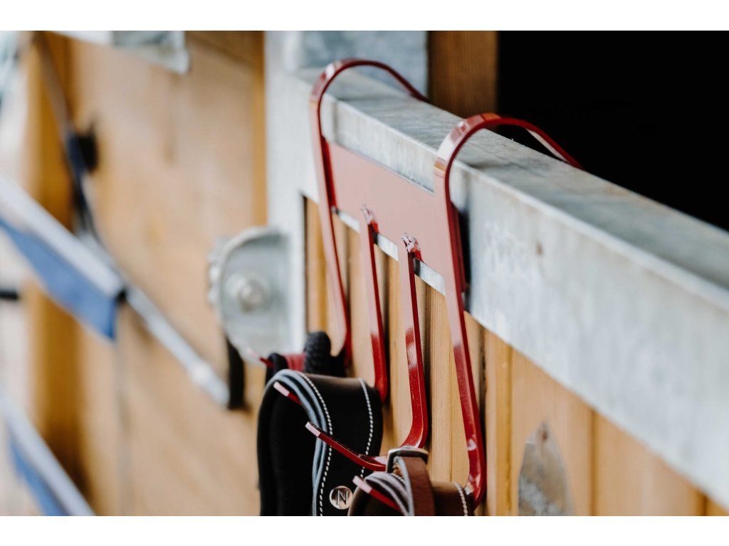 Univerzálny závesný vešiak je praktickým pomocníkom, na ktorý ľahko zavesíte uzdečky, ohlávky, vodítka, vedrá, tašky na topánky a ďalšie vybavenie. Vďaka dvom pevným háčikom ho jednoducho zavesíte na dvere boxu alebo iné miesto. Je vyrobený z odolnej ocele a skvele poslúži v stajni aj na pretekoch.