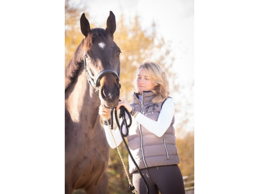 Dámská vesta Anouck je nádherný kousek, který si zamilujete na první obléknutí. Je ušitá z hustě prošívaného a hřejivého materiálu, který je doplněn elegantním kontrastním lemováním na límci, spodním okraji i kolem průramků. Drží skvěle teplo, ale zároveň poskytuje maximální svobodu v pohybu, takže je ideální jak do sedla, tak na každodenní nošení. Vysoký límec chrání před chladem, dvě přední kapsy na zip udrží v bezpečí všechny drobnosti a 3D výšivka loga výrobce na hrudníku dodává kousku elegantní vzhled.