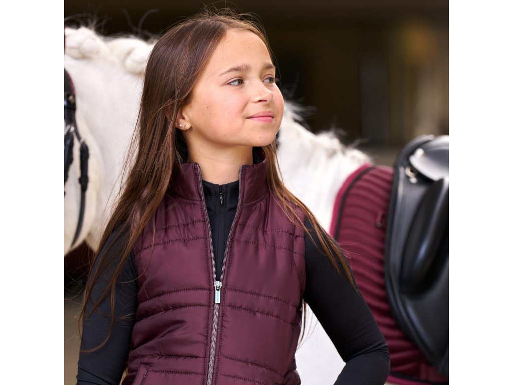 Detská vesta Bonnie je štýlová a pohodlná prešívaná vesta, ktorá poteší každú malú jazdkyňu. Horizontálne prešívanie dodáva veste trendy vzhľad a mäkká džersejová podšívka zabezpečuje príjemné teplo a komfort pri nosení. Vďaka obojsmernému prednému zipsu sa vesta ľahko oblieka a prispôsobí pohybu dieťaťa. Skryté vrecká na zips bezpečne uchovajú drobnosti.