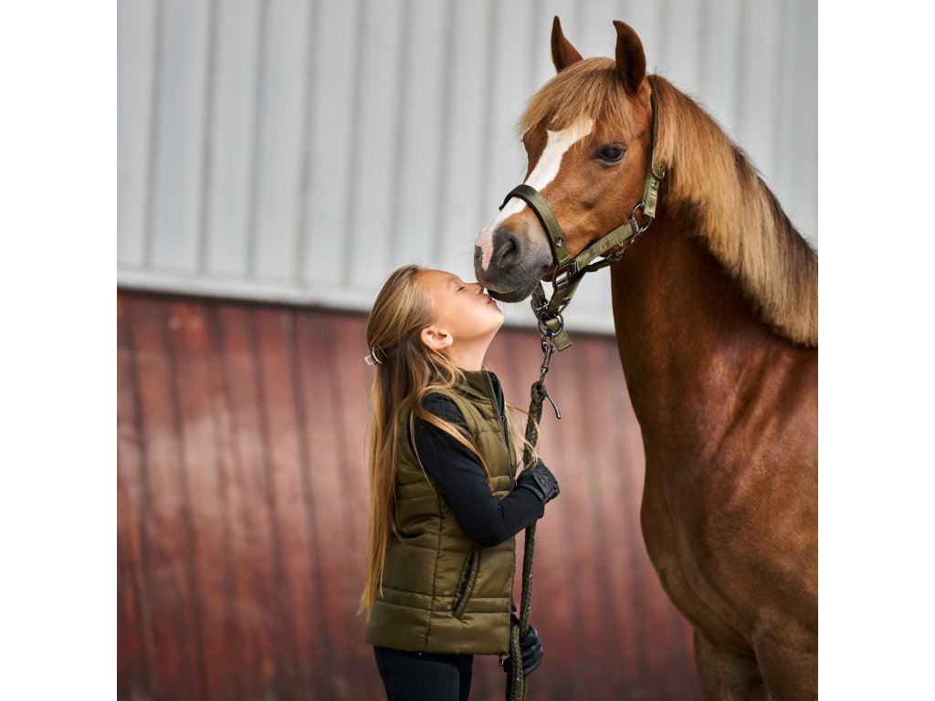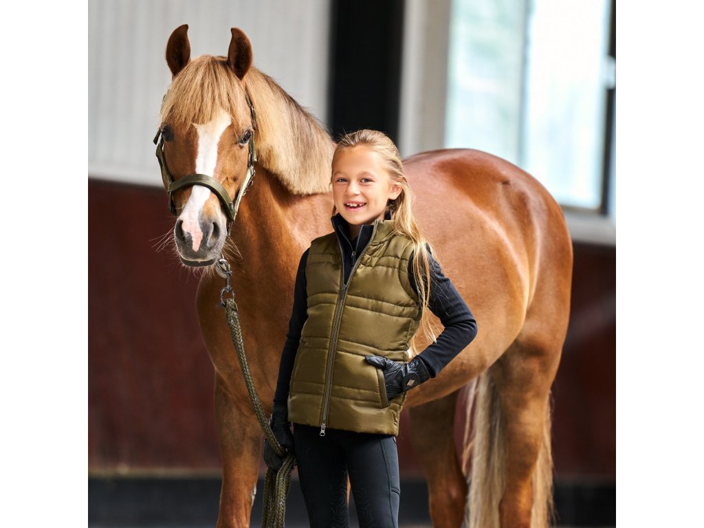 Detská vesta Bonnie je štýlová a pohodlná prešívaná vesta, ktorá poteší každú malú jazdkyňu. Horizontálne prešívanie dodáva veste trendy vzhľad a mäkká džersejová podšívka zabezpečuje príjemné teplo a komfort pri nosení. Vďaka obojsmernému prednému zipsu sa vesta ľahko oblieka a prispôsobí pohybu dieťaťa. Skryté vrecká na zips bezpečne uchovajú drobnosti.