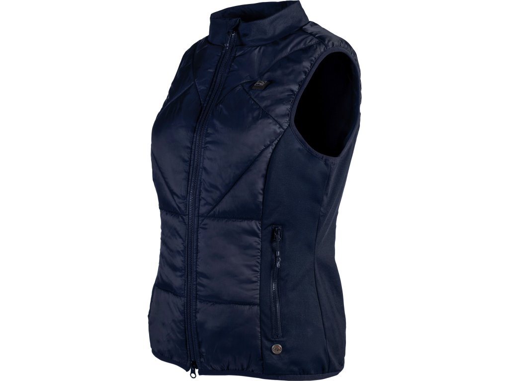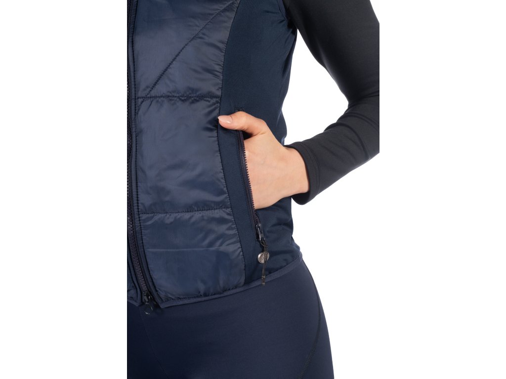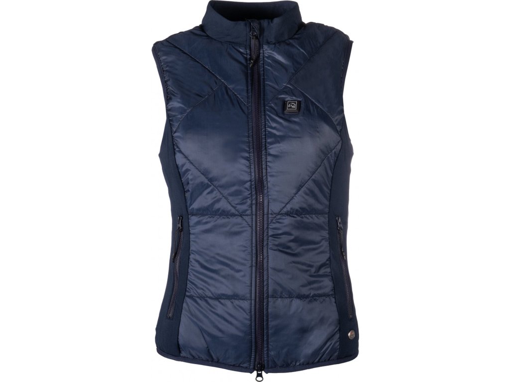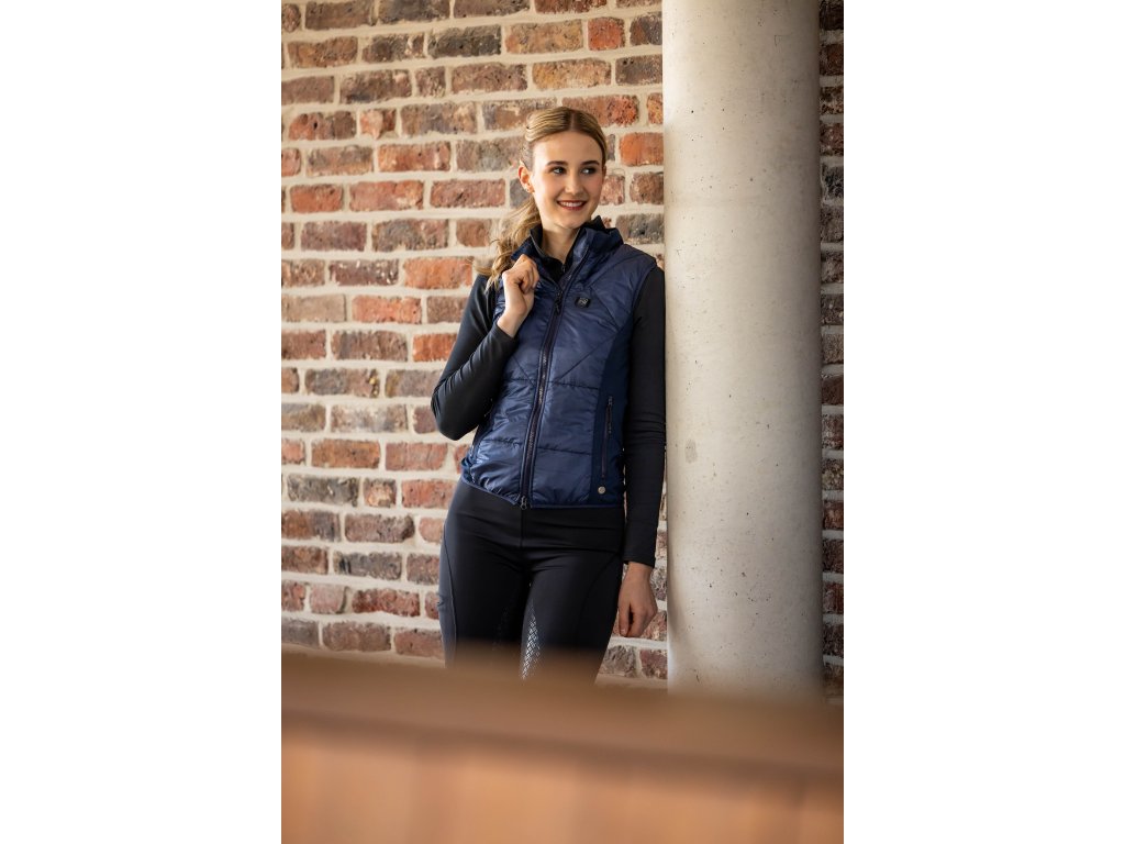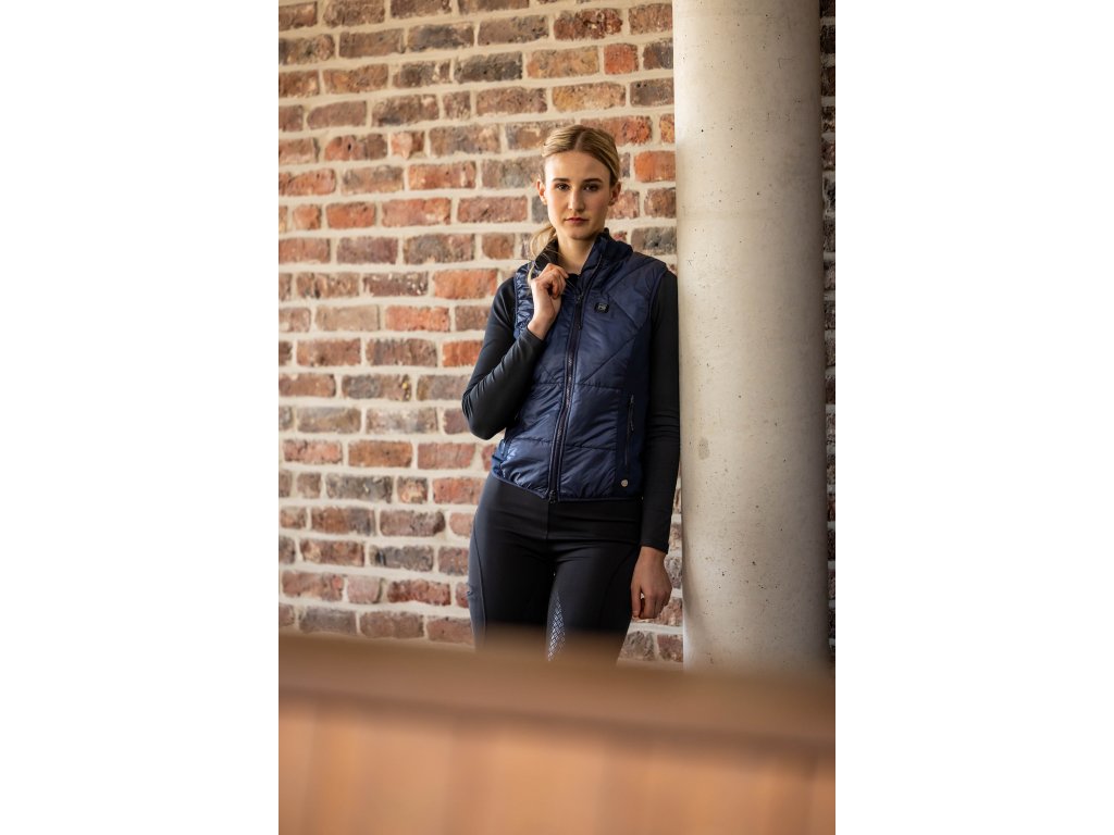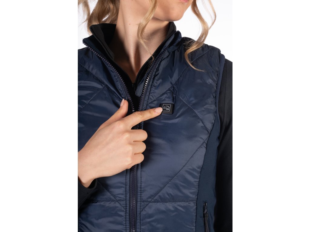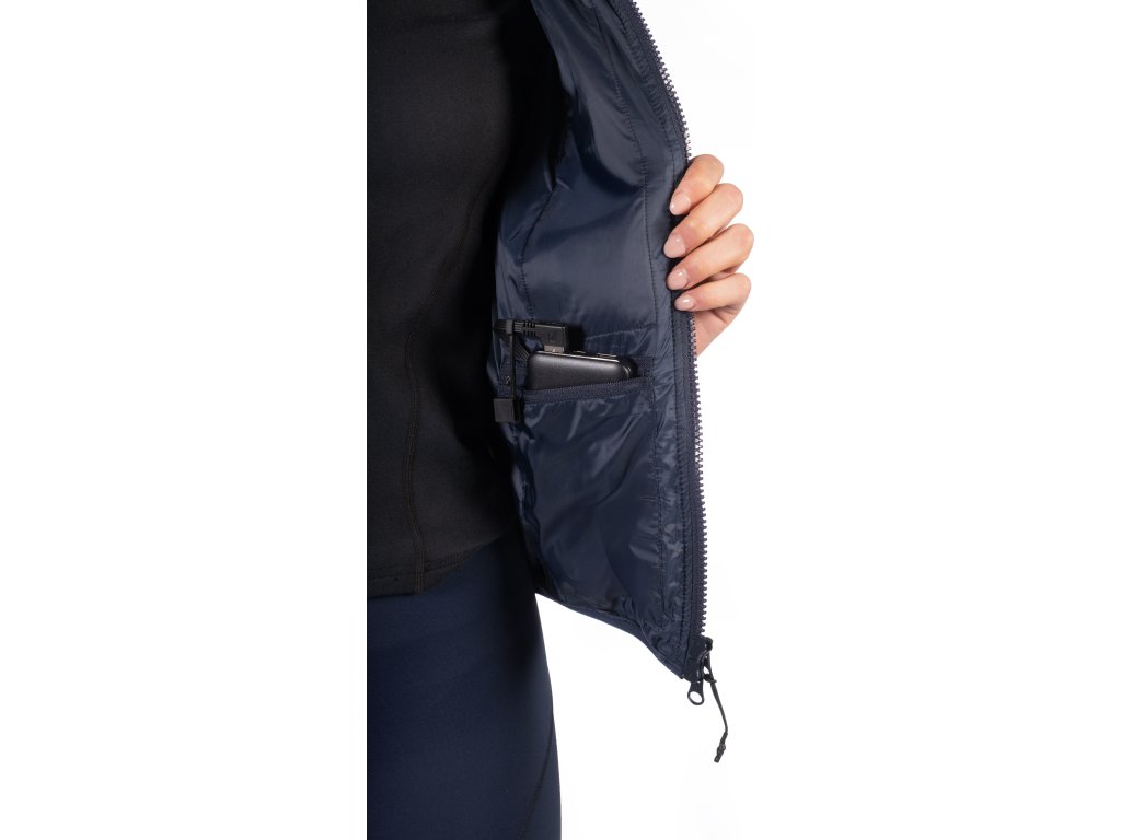 Pohodlná vesta s integrovanou funkciou ohrevu je vybavená príjemným golierom, dvojcestným zipsom a elastickou vložkou, ktorá zaisťuje dokonalé prispôsobenie pohybu. Vďaka priliehavému strihu lepšie udržuje teplo. Má praktické vonkajšie vrecká na zips a moderné prešívanie s mäkkou bavlnenou výplňou.Integrovanú funkciu ohrevu je možné ovládať zvonku stlačením tlačidla na hrudi. Vesta je dodávaná s powerbankou 5 000 mAh, ktorá umožňuje približne 4 hodiny ohrevu. UPOZORNENIE: Pred praním vyberte powerbanku. Vesta sa dá prať v práčke pri 30 °C, nie je vhodná na žehlenie.