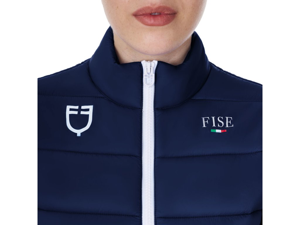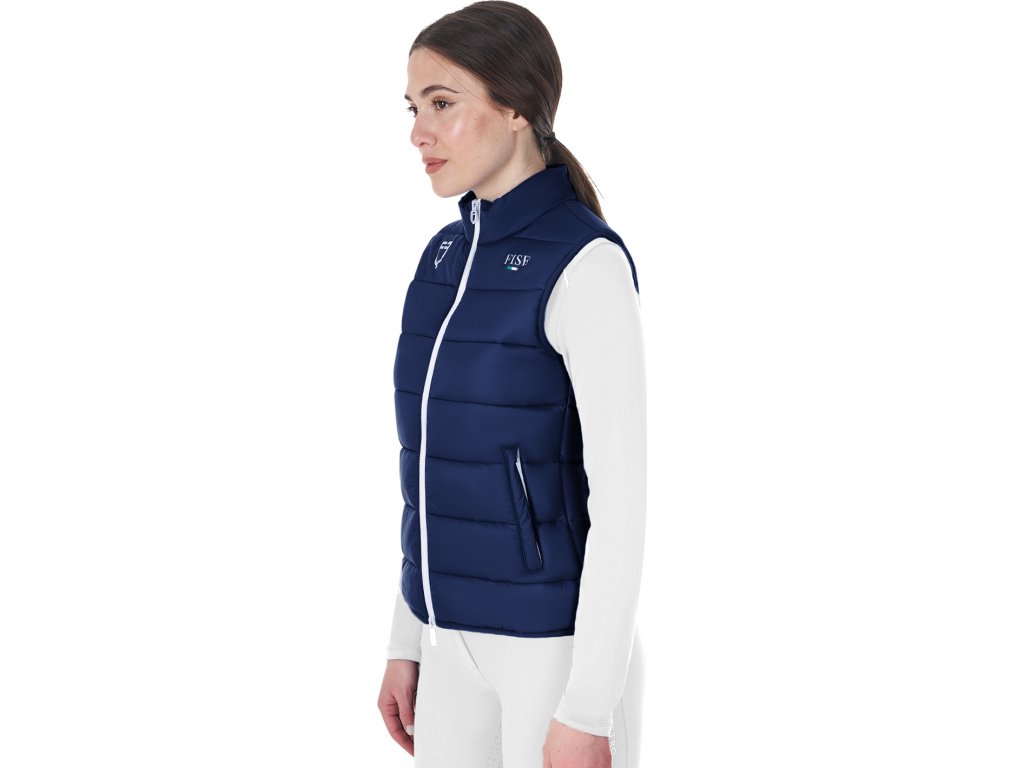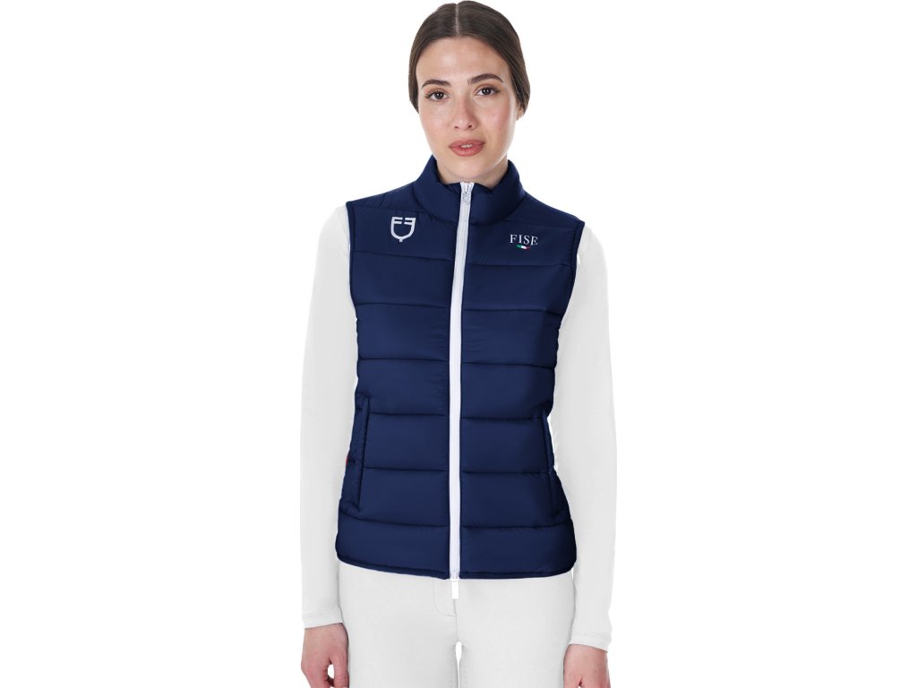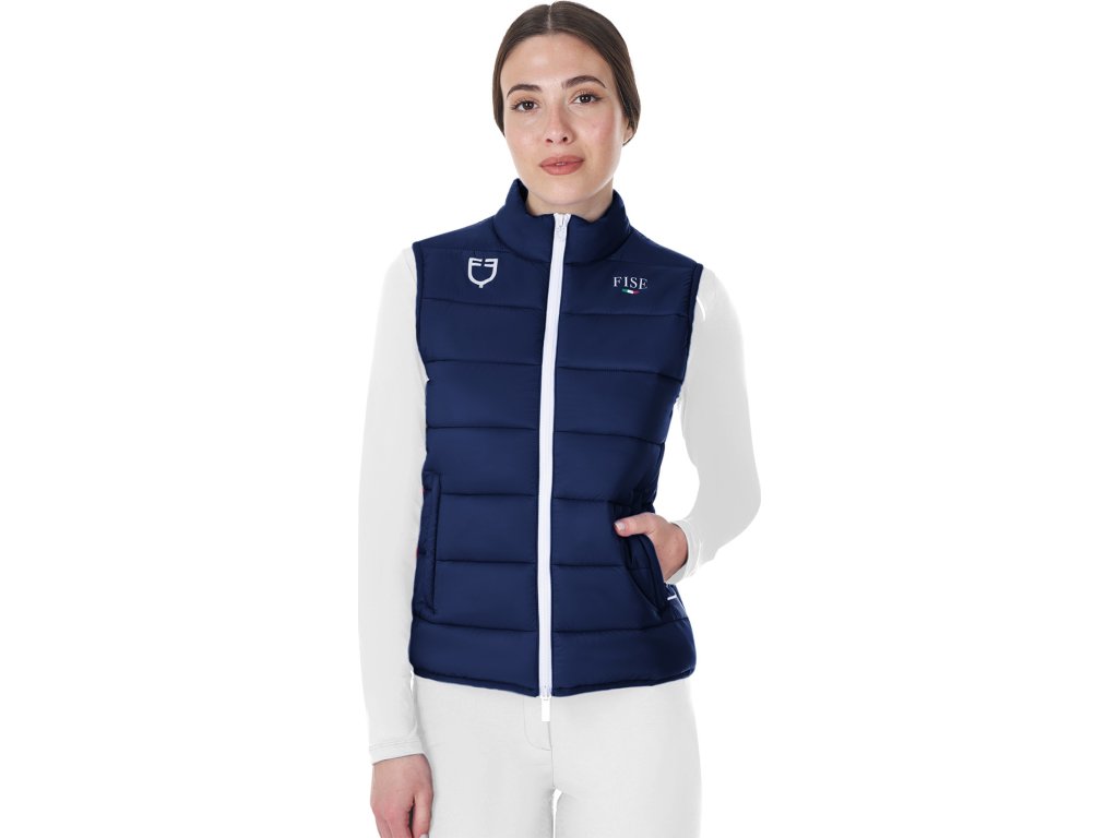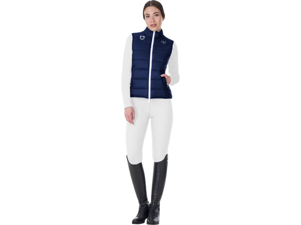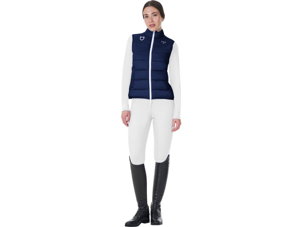 Dámska vesta Equestro X Fise je vyrobená z technickej a priedušnej tkaniny, ktorá zaisťuje pohodlie pri každodennom tréningu aj vo voľnom čase. Je vybavená ľahkým polstrovaním, takže poskytuje príjemné teplo aj v chladnejšom počasí. Má praktické zapínanie na zips s vetruvzdornou úpravou a dve bočné vrecká. Priliehavý strih nielen lichotí postave, ale zároveň zaručuje maximálnu voľnosť pohybu. Ideálna voľba pre jazdkyne, ktoré hľadajú spoľahlivý kúsok pre každé ročné obdobie.