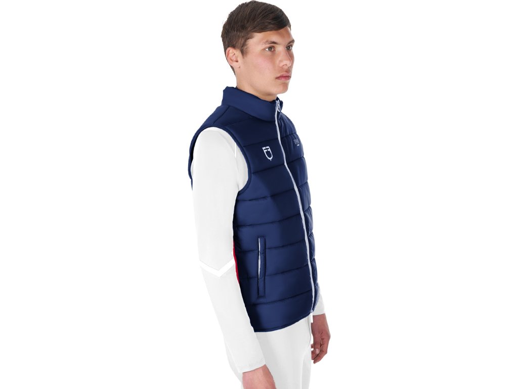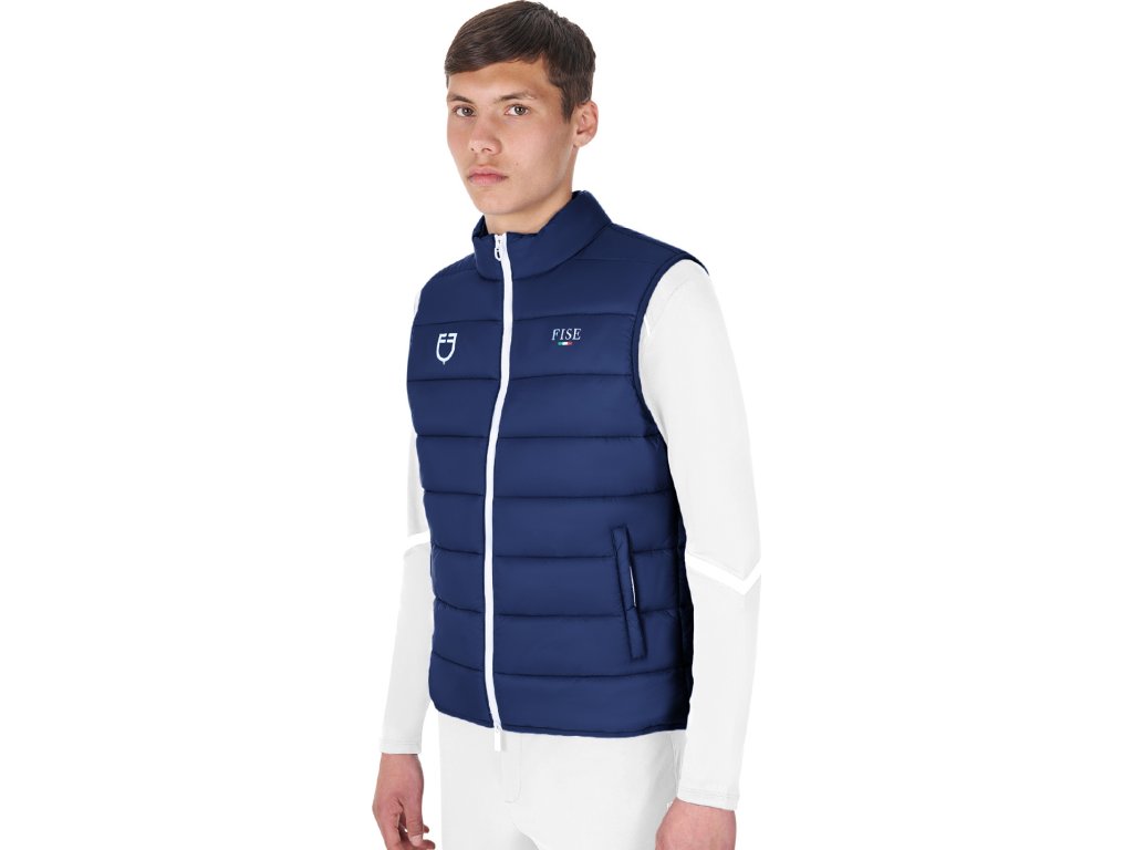 Pánska vesta Equestro X Fise je vyrobená z technickej a priedušnej tkaniny, ktorá zaisťuje pohodlie pri každodennom tréningu aj vo voľnom čase. Je vybavená ľahkým polstrovaním, takže poskytuje príjemné teplo aj v chladnejšom počasí. Má praktické zapínanie na zips s vetruvzdornou úpravou a dve bočné vrecká. Ideálna voľba pre jazdcov, ktorí hľadajú spoľahlivý kúsok pre každé ročné obdobie.