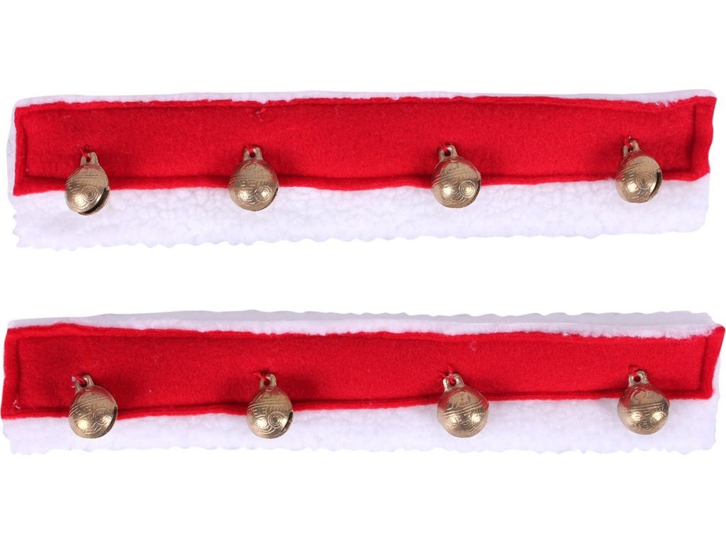 Vianočné ozdoby na uzdečku, z ktorých každá má štyri rolničky. Ľahko sa pripevní na ohlávku alebo uzdečku, so zapínaním na suchý zips.
