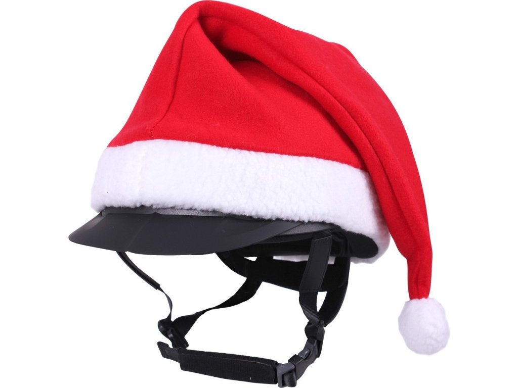 Veselá vianočná čiapka, ktorá sa dá nasadiť na prilbu.