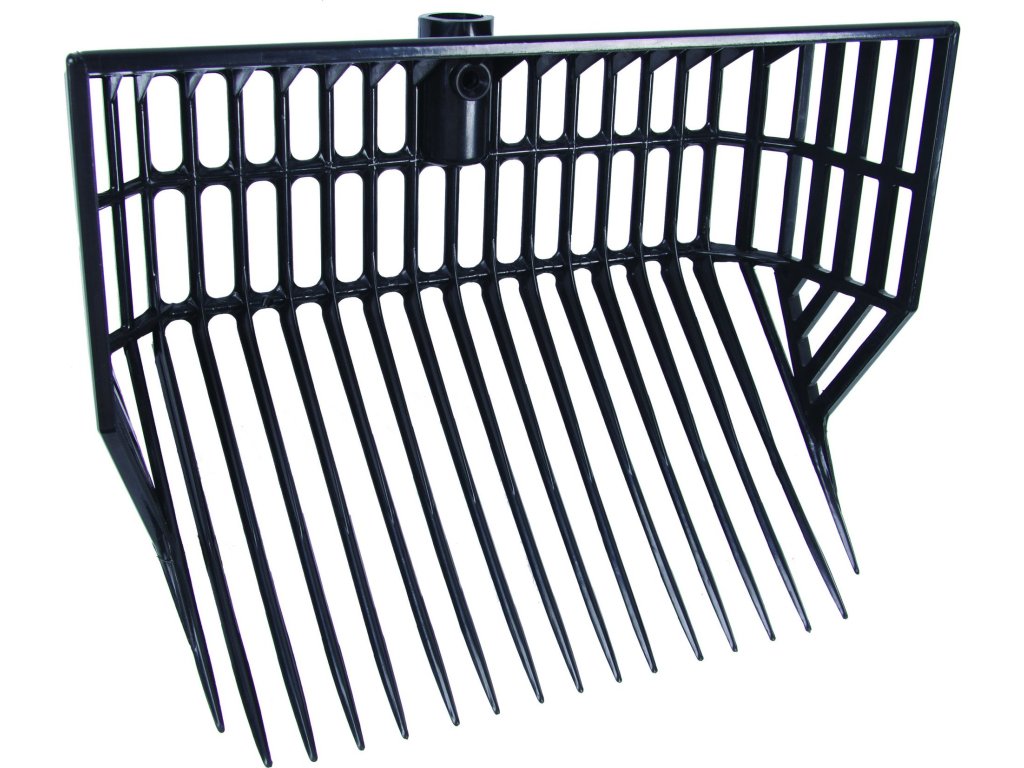 Praktické miestovacie vidly z vysoko odolného plastu s extra vysokými bočnými panelmi na jednoduché odstraňovanie vrstiev rašeliny a štiepky. Dodávané bez rukoväte.