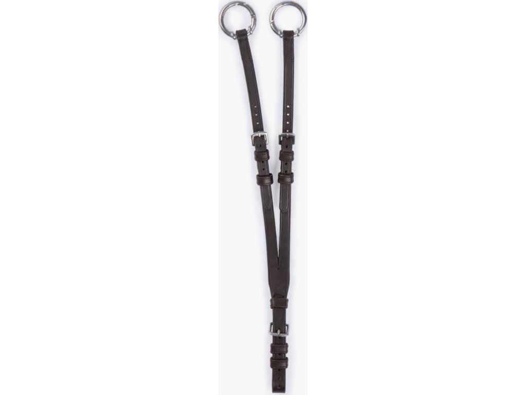 Martingalová vidlica vyrobená z vysokokvalitnej kože. Vhodná pre všetky typy poprsníkov. Vidlica má otváracie krúžky "snap it", takže sa oťaže nemusia zakaždým odopínať. Háčiky "Snap it" zabezpečujú rýchlu a bezpečnú manipuláciu. Veľkosť možno upraviť podľa aktuálnej potreby. Kovanie v striebornej farbe.
