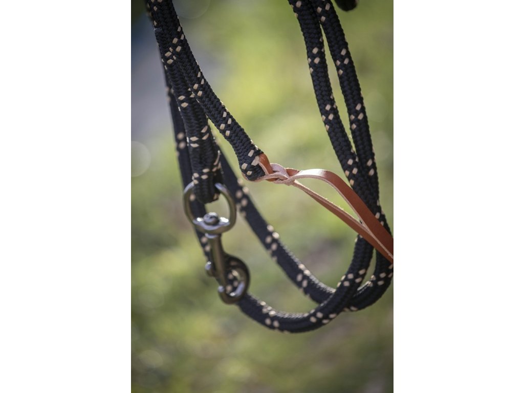 Pracovné vodítko Ethological Penelope je ideálnou voľbou pre všetkých, ktorí sa venujú práci s koňom zo zeme. Je vyrobené z pevného lana v kombinácii čiernej a béžovej farby. S dĺžkou 3,5 metra ponúka vodítko dostatok priestoru pre voľný pohyb koňa, a pritom umožňuje zachovať priamy kontakt a kontrolu. Na jednom konci sa nachádza odolná strieborná karabína, ktorá zaistí jednoduché a bezpečné pripnutie. Na druhom konci je kožený uzol, ktorý zaisťuje lepšiu kontrolu pri vedení koňa.