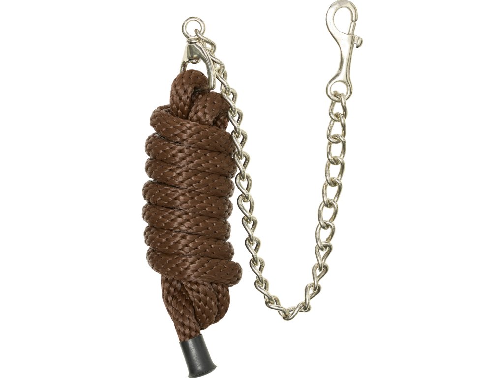 Pevné vodítko určené pro bezpečné a spolehlivé vedení koně. Je vybaveno kovovým řetízkem na konci a klasickou karabinou pro snadné a jisté připnutí k ohlávce. Odolný materiál zajišťuje dlouhou životnost a pohodlnou manipulaci při každodenním používání.