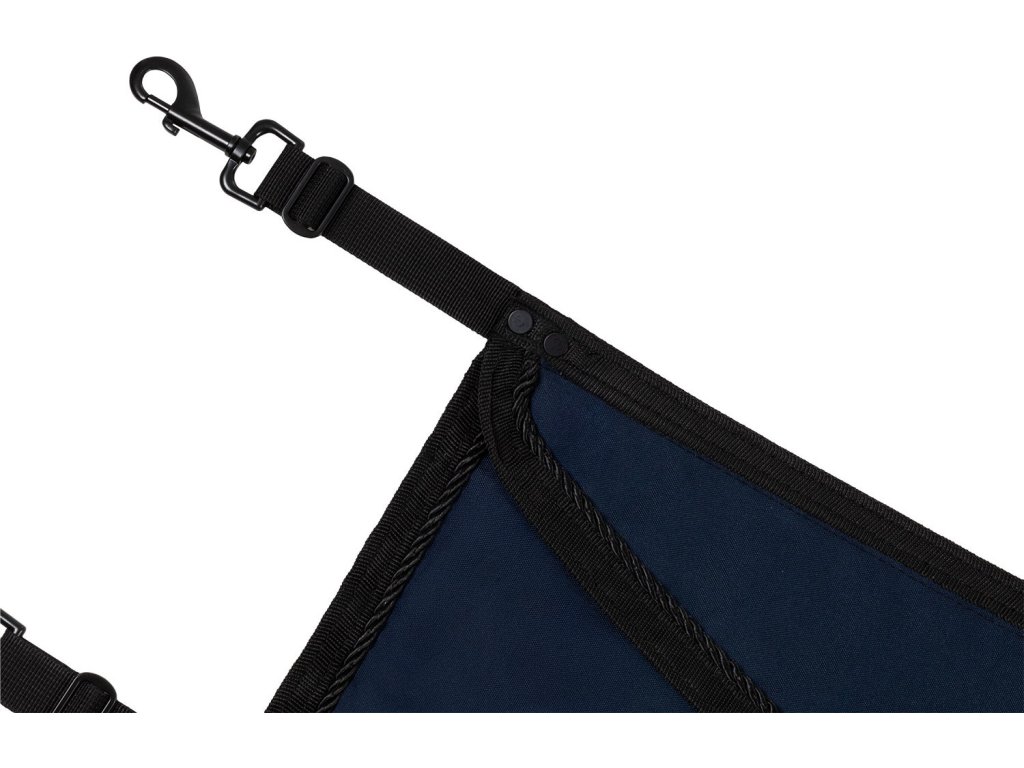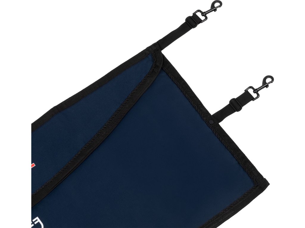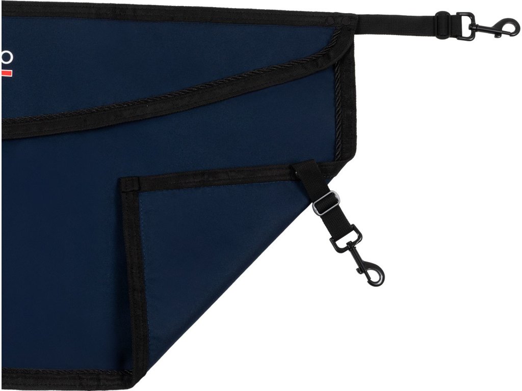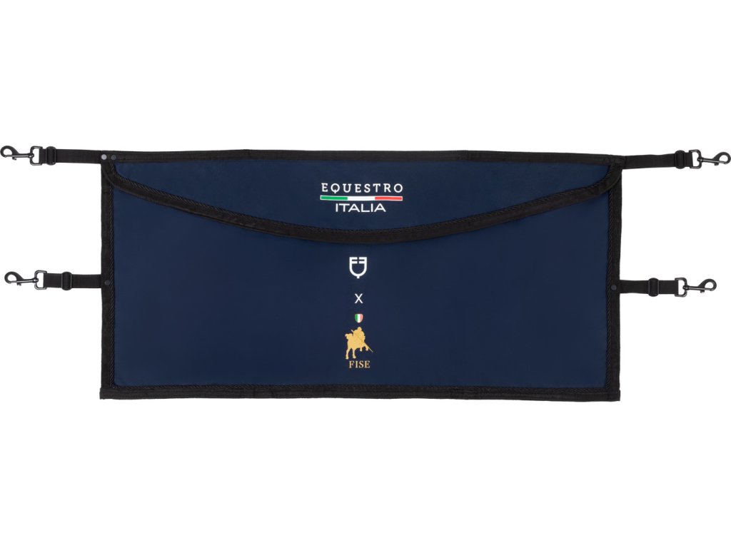 Záves na box X Fise je vyrobený z kvalitnej a odolnej tkaniny typu Cordura, ktorá je známa svojou pevnosťou a dlhou životnosťou. Záves slúži ako ideálny doplnok na preteky, kde koňovi poskytuje pokoj, tieň a potrebné súkromie. Nastaviteľné popruhy s karabínami zaisťujú jednoduché prispôsobenie rôznym typom a veľkostiam boxov a umožňujú jednoduché uchytenie. Záves je elegantne doplnený vyšitým logom Equestro X Fise a nápisom Equestro Italia.