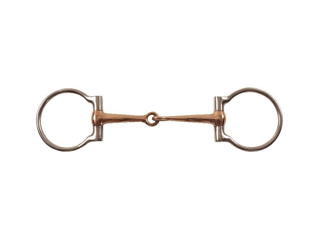 Kvalitné raz lomené westernové D-zubadlo z nerezovej ocele s medeným udítkom. K dispozícii vo veľkosti 12,5 cm.