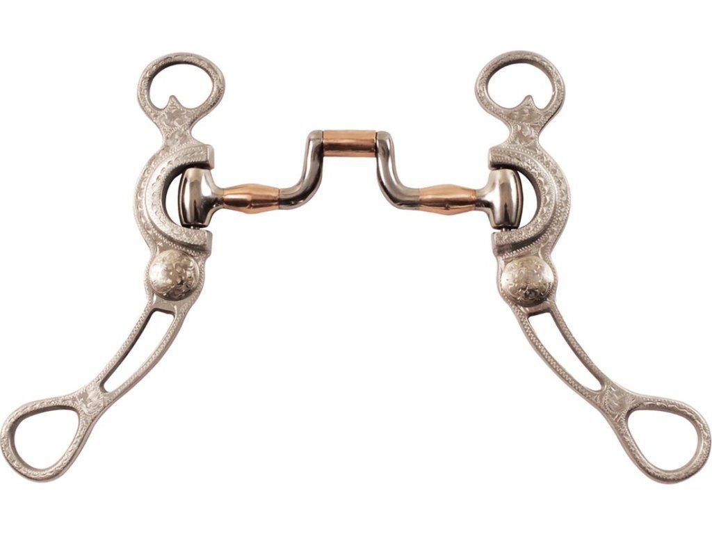 Westernové nelomené pákové zubadlo s medenými vložkami na udítku. Zdobené ramená sú vyrobené z hliníka.