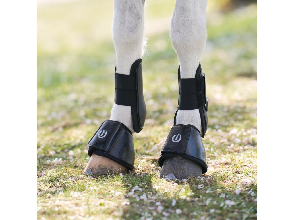 Zvony, ktoré spájajú štýl, funkčnosť a ochranu v jednom výraznom dizajne. Vyrobené z lesklej látky, ktorá dodáva očarujúci vzhľad. Robustné prevedenie spoľahlivo chráni kopytá a spenky pred nárazmi aj odrením. Vybavené klasickým zapínaním na suchý zips. Dodávané v páre.